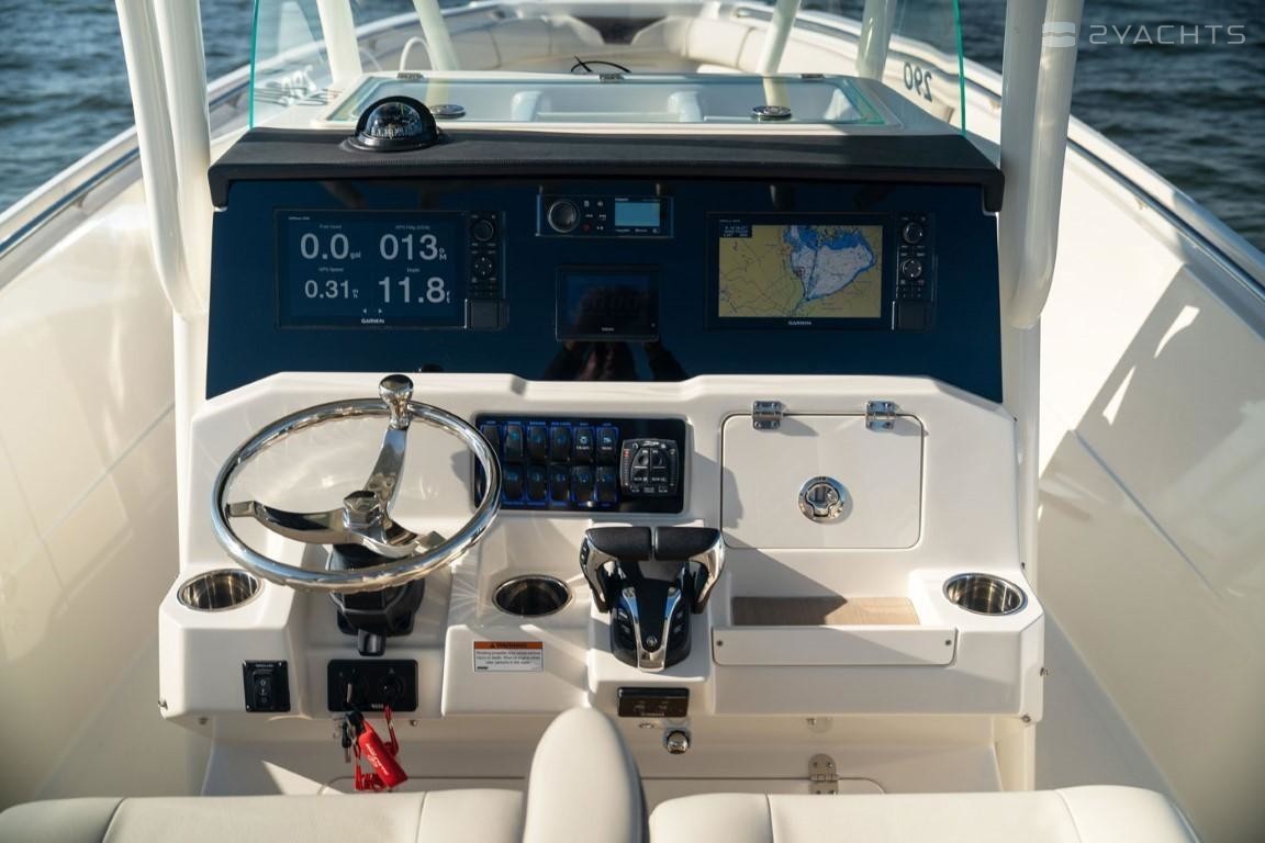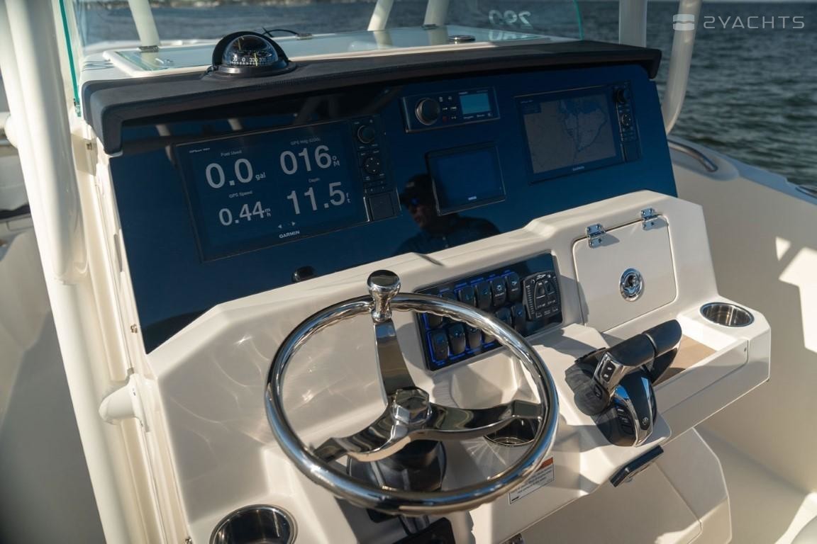This new 2023 Sailfish 290 CC in Whisper Grey hull color . This boat is intended to fish and play hard while providing a solid, stable ride in virtually any weather.