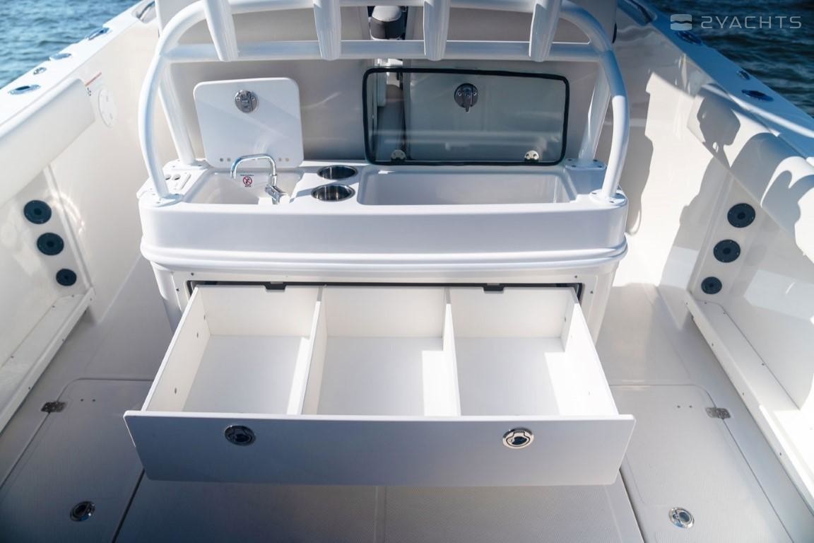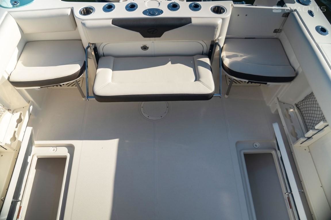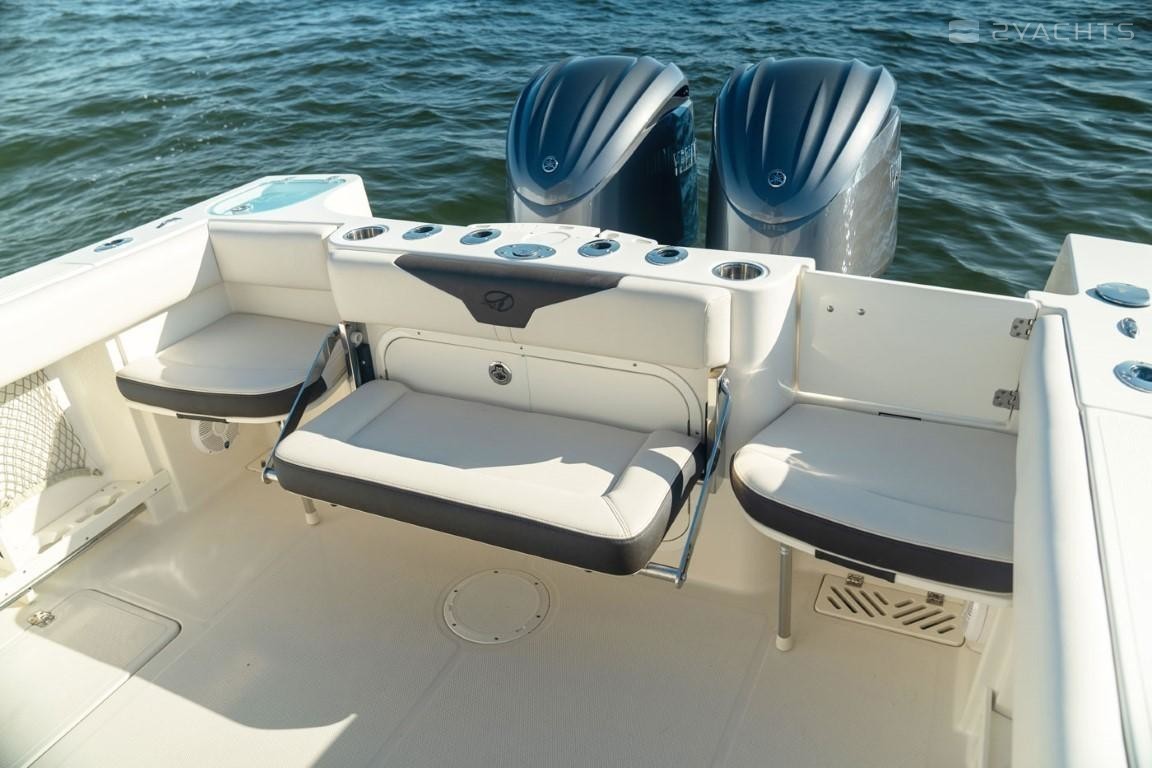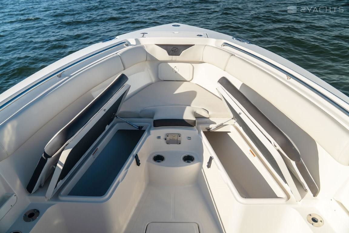 Seating features include the Comfort Package with rear jump seats, bow cushions buttons, bow bolsters and bow backrest, and 40" Aft folding seat.