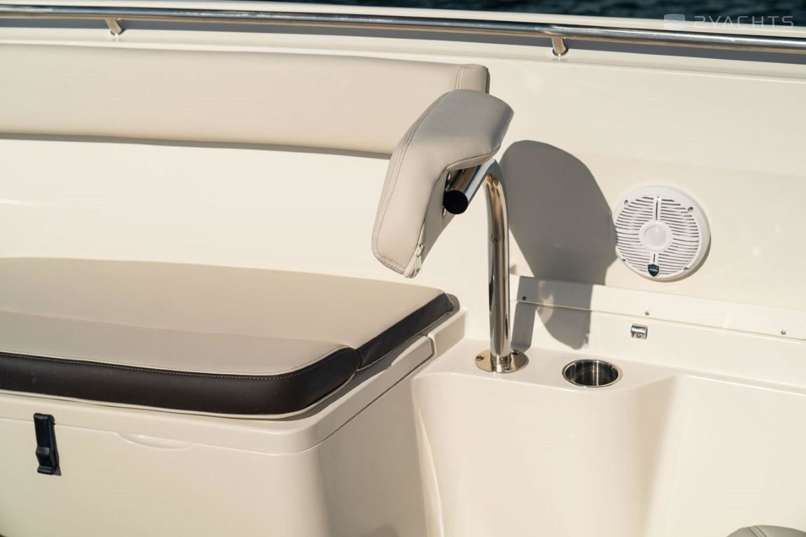 Comfort PackageRear Jump Seats, Bow Cushion Bottoms, Bow Bolsters & Forward Facing Bow BackrestsEntertainment PackageSki Tow Bar, Removable Bow Table, Fusion Transom Remote Control & Underwater LED Lights (3)SeatingBow Filler Cushion, 40" Aft Folding SeatElectronics & Sound SystemGarmin B75M Airmar Thru Hull Transducer w/ CHIRP, Built-In 3 Bank Battery Charger w/ LED Readout, Garmin Radar Cable & Power CableOptionsAcrylic 3 Piece Enclosure, Console & Leaning Post Covers, Remote Spot Light for Hard Top, Bow Rod Holders, Captain's Anti-Fatigue Pad, Two Tone Hard Top, Yamaha JoystickHull Color - Whisper Grey