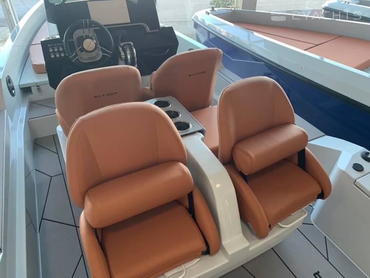 Casco azul + tapiceria naranja Sillas en limusina, mesa y solarium Solarium proa Mastil de esqui GPS / Sonda Simrad Toldo de sol Ducha en popa ba?era Escalera de ba?o Lona asientos + consola Escotilla grande en cubierta delantera Direccion hidraulica Volante estandar Luces de navegacion Bombas de achique (2 piezas) Tanque de combustible fijo con sensor Almacenamiento de extintores con puerto de incendios Suelo sintetico en ba?era Portavasos en cubierta delantera (2 piezas) Pegatinas de casco Parabrisas ajustable Portavasos en consola (2 piezas) Bolsa de almacenamiento debajo del volante Mercury Vessel View