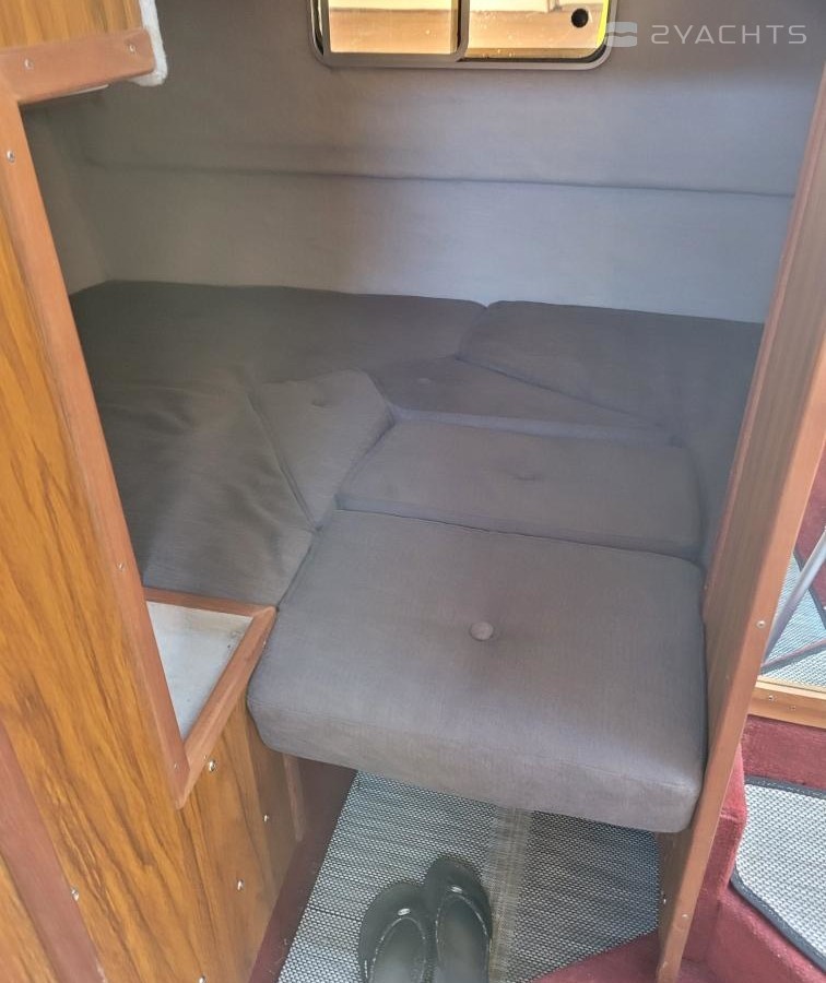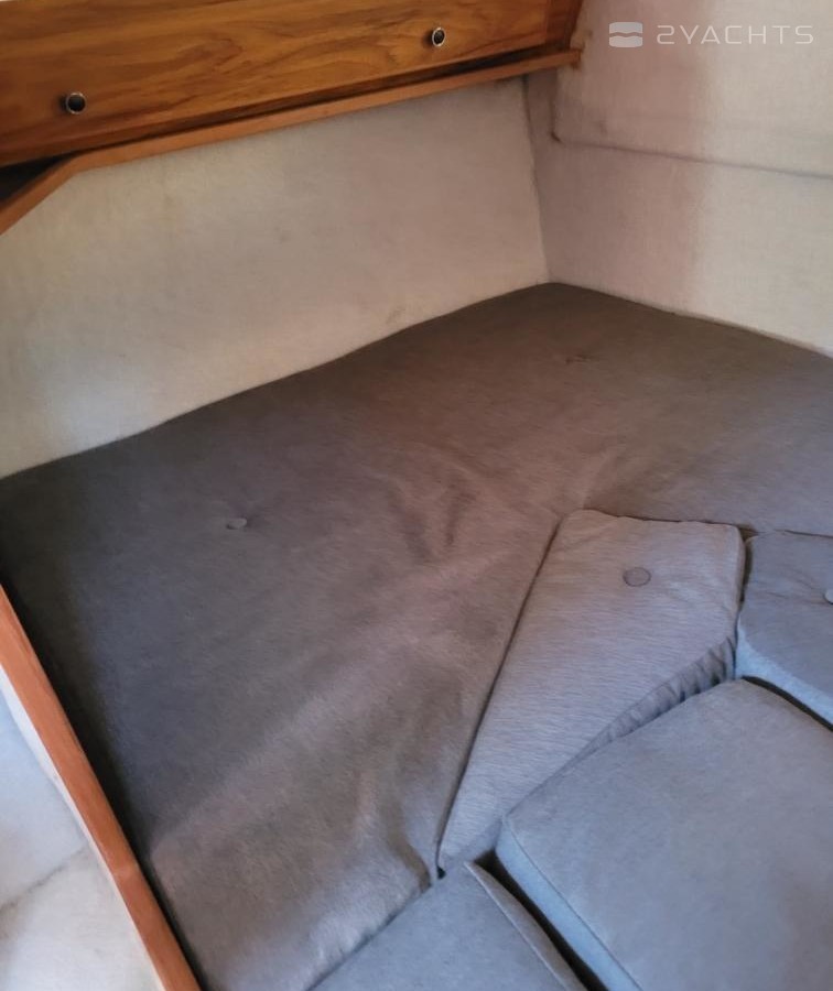 Sleeps 6. Foward cabin with door sleeps2. Dinette area sleeps 2, Aft cabin sleeps 2. Interior has been re upholstered. Very nicely done. New marine vinyl woven flooring in cabin as well as the whole rear deck.