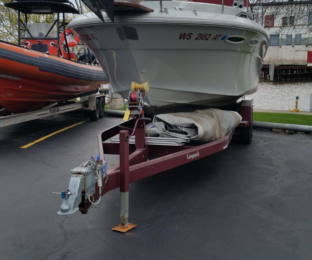 Boat has a mooring cover Bimini and camper cabin as shown in pictures. Very mechanically sound. Boat is in great shape. Comes with triple axel trailer as shown I'm pictures. The trailer is a Vangard.