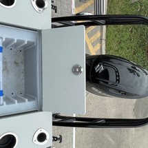 The impressive list of standard features includes an interfaced Garmin GPS, stereo system with Wet Sounds RGB backlit speakers and controller, reclining seats that swivel, comfortable upholstery, USB ports, inward folding door, coordinating sun-top and is built on a 16” heavy-duty Hat/Z channel chassis. The SW3 furniture is built on solid compartments that provide ample dry storage throughout. Topping off SW3 is an extended rear deck making loading, docking and watersports easier and all the more enjoyable.