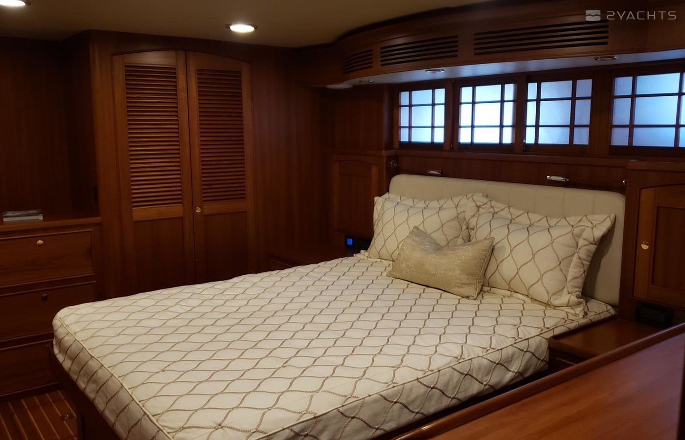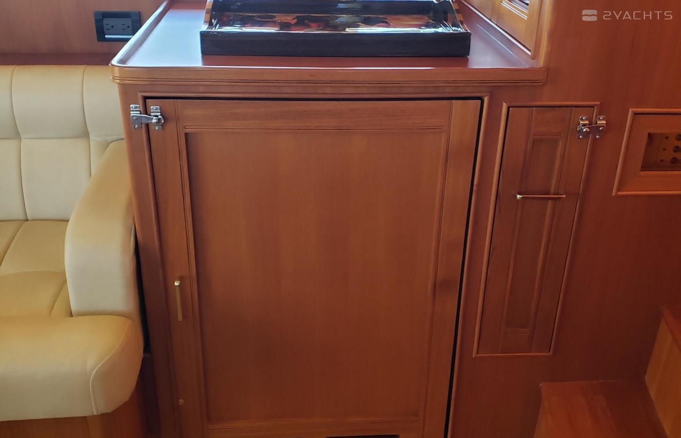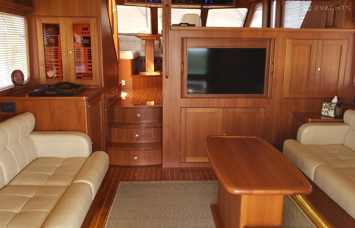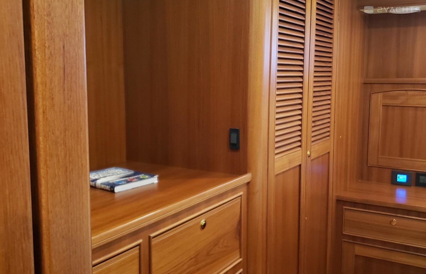 When entering the vessel take note of the classic teak interior built with a single hand selected highest quality Burmese Teak tree ensuring that each grain is identically matched throughout the vessel! This vessel is built with satin finish teak which graces the interior and luscious teak and holly floors finished throughout the salon, galley and berth decks.