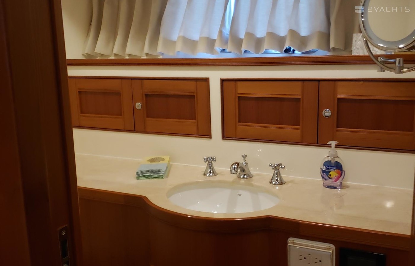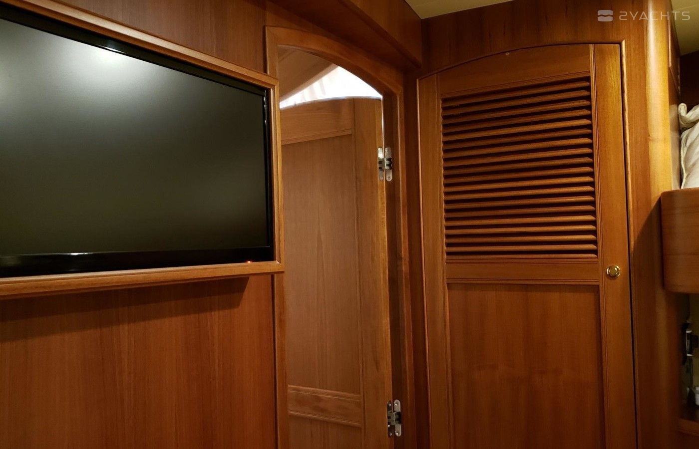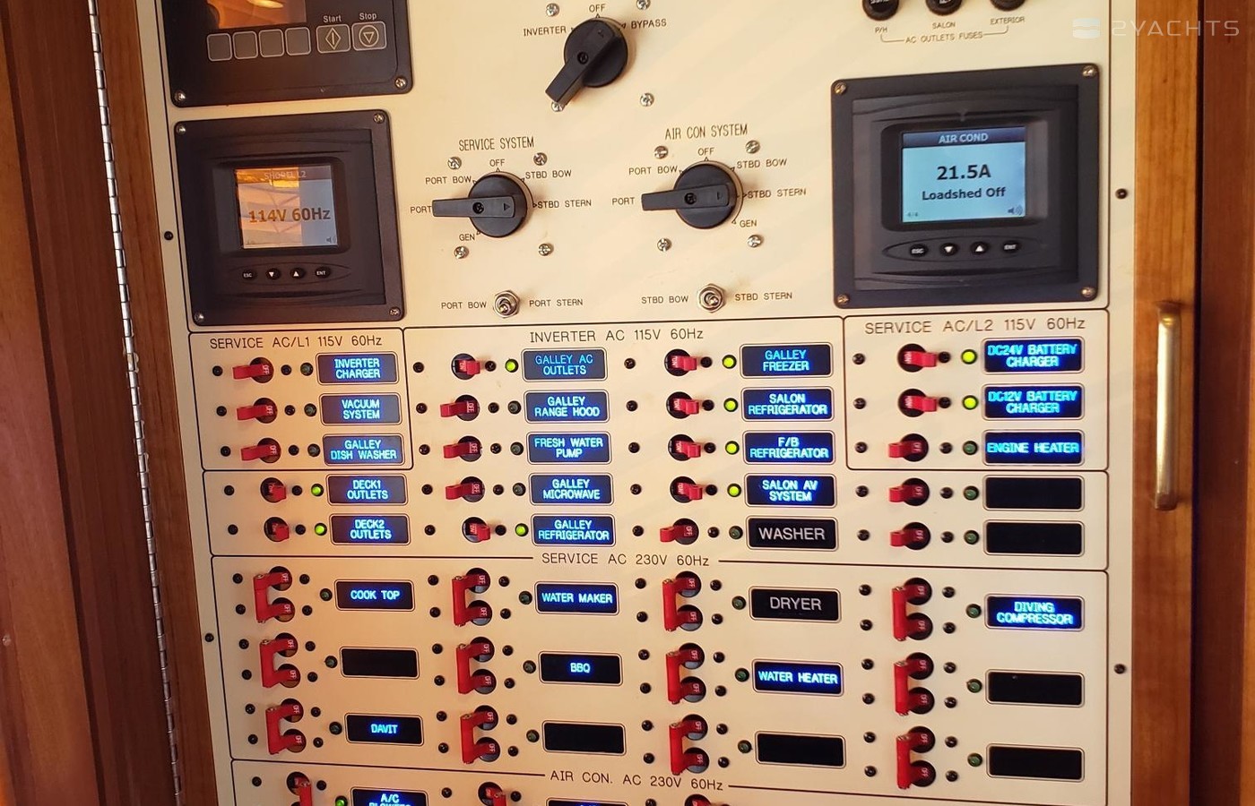 Marlow yachts are famous for their spacious “stand up” engine rooms built for those who do not wish to crouch down, forced to move like a contortionist to gain access to vital systems in the central command station. Marlow builds approved tanks in fire retardant fiberglass, certified by the (ABYC) American Boat and Yacht Council for severe duty. The Cummins QSM-11 engines and Onan generator are easily accessible. This air-conditioned engine room keeps the area clean, dry and corrosion free. There is a camera for monitoring this area from the helm. The 13.5KW Onan Generator is surrounded with its sound shield box in the engine room and is superb in providing very quiet operation.