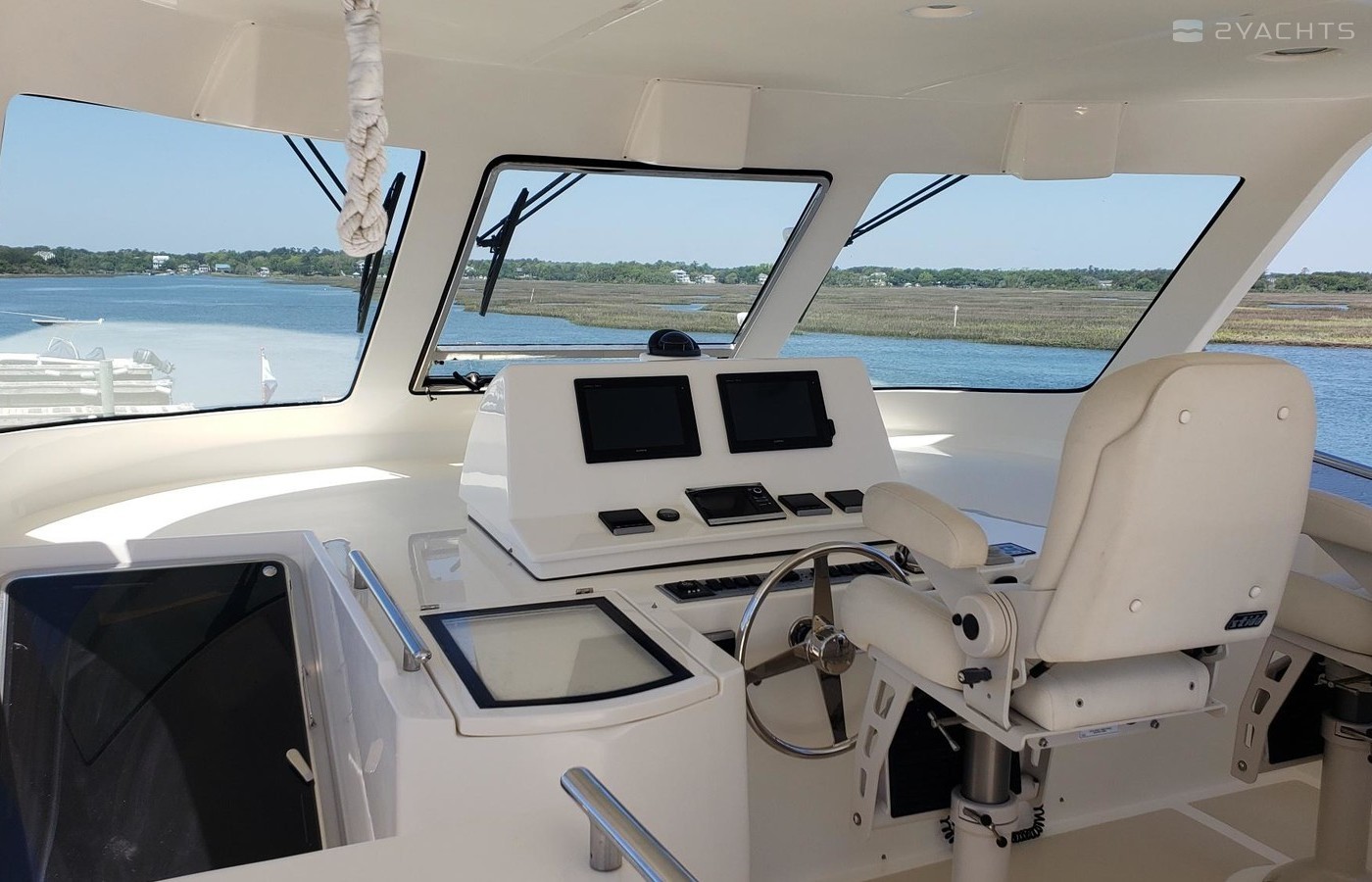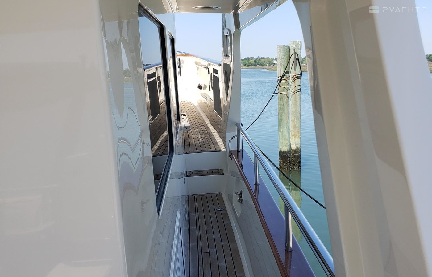 Upon boarding the 49E Marlow Explorer, you will notice the interior volume and expansive 360-degree views, large salon windows allowing for comfort as you cruise to your favorite ports of call. The 2.5 staterooms will accommodate (7) persons and a pilothouse with gourmet galley and a dinette large enough to seat family and friends together when underway and cruising. With a comfortable salon with large flat panel TV, Bose sound system and built in seating with storage, being on this yacht gives the feeling of being at an exquisite home on the ocean.