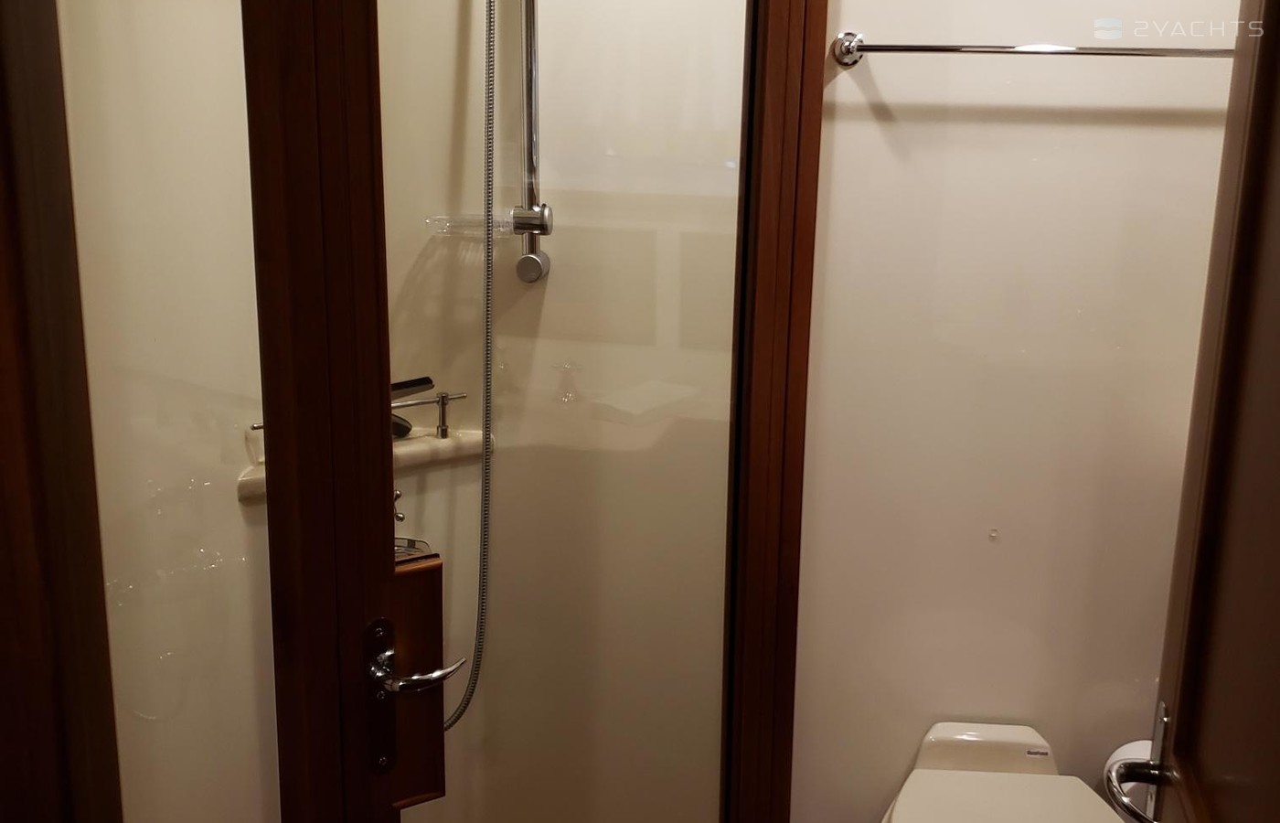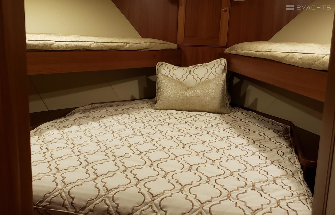 When overnight cruising, the cabins will accommodate sleeping a total of (7) guests. This includes the master suite with a spacious queen berth port side sleeping for (2); the VIP forward berth for (2) and added (2) extra bunks a loft of the VIP berth and finally, (1) more extra single berth bunk which is located forward starboard.