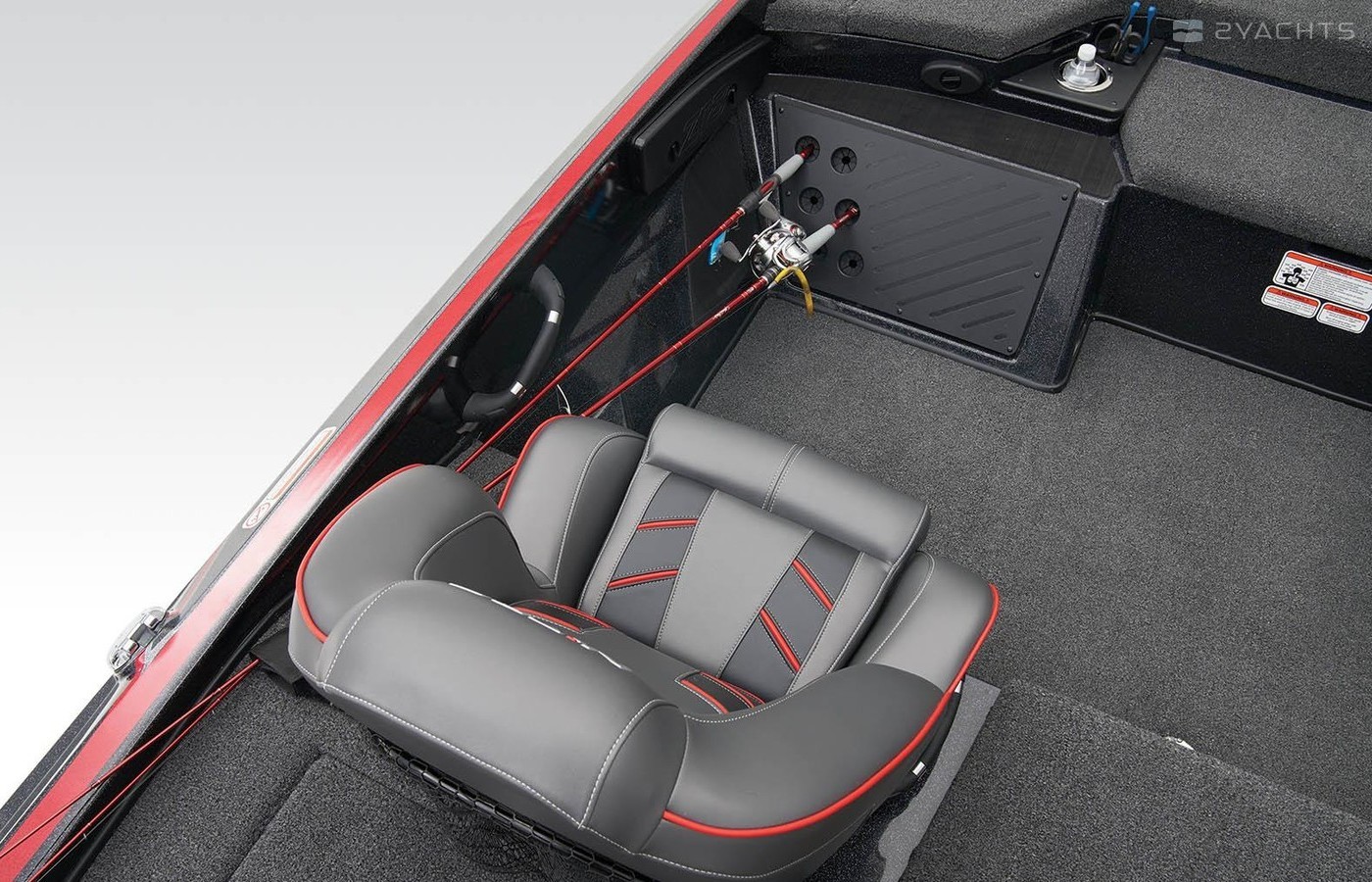 • Oversized, lockable bow port & starboard rod lockers w/lift assists for rods up to 8' (2.44 m)