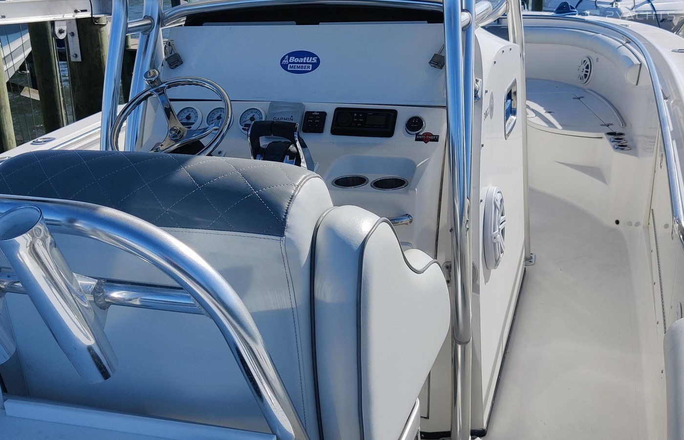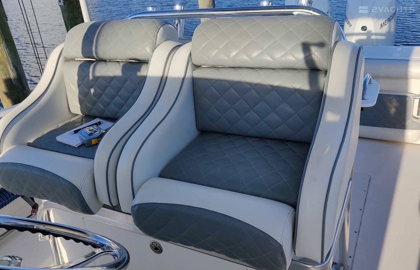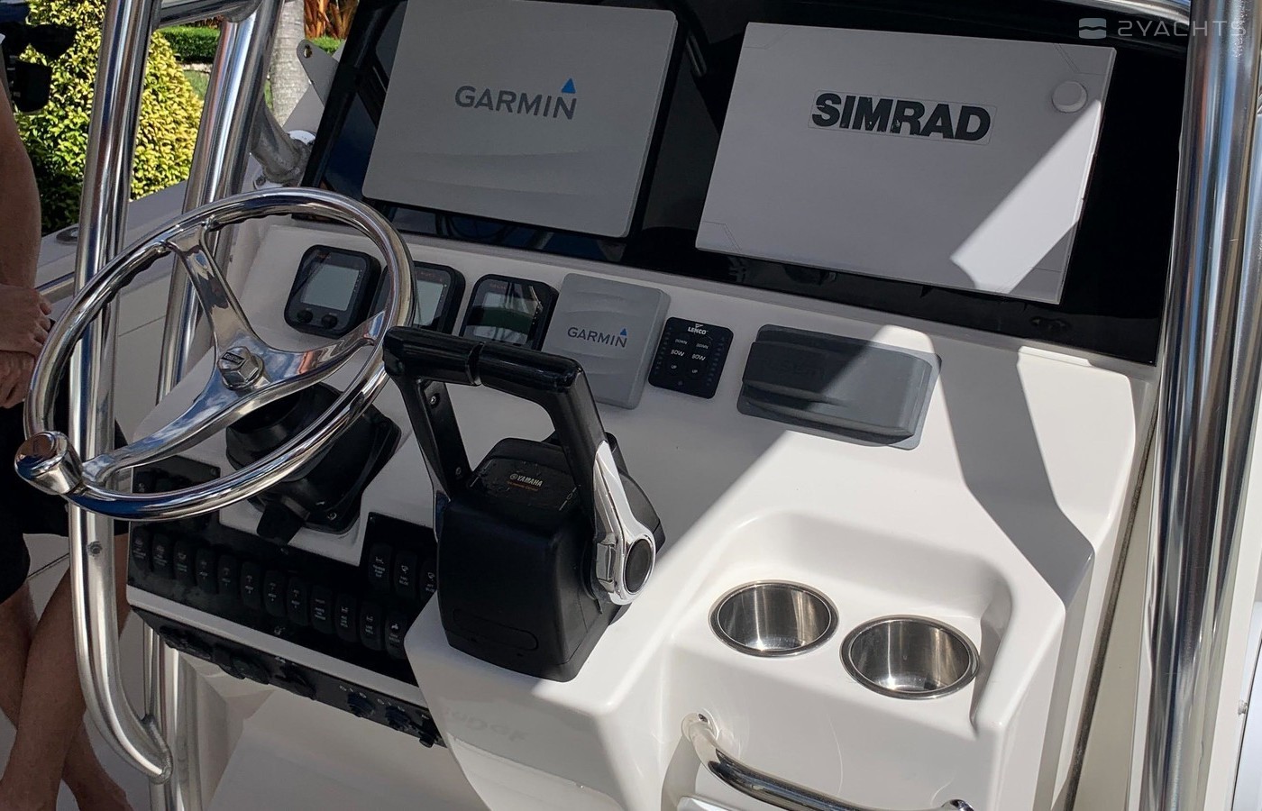 We didn’t just push the technological envelope with the 318CC, we tore it to shreds. Taking the very best innovations from our entire line and adopting cutting-edge applications from various manufacturing disciplines has produced a boat that represents a major breakthrough in composite design. The EdgeWater Single Piece Infusion (SPI) process gives the 318CC a strength-to-weight ratio that is unmatched on the water. This translates to a boat with better handling, excellent fuel efficiency, and unbeatable range. Combined with a generous list of up-graded standard features, any serious angler will quickly realize that today’s open molded polyester boats can’t compare to the 318CC. Repowered 2021 Twin Mercury V8- AMS 300 hp. Vessel View and Anti Theft system. Newer Full Electronics systems 2019.