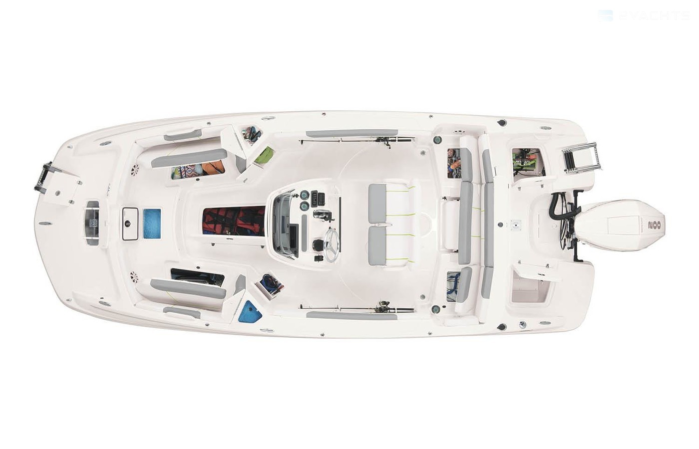 Under-gunnel rod holders carry up to six combos (six 7’ rods or four 7’ + two 10’ rods) at the ready when the bite gets hot. A livewell keeps your catch perky, tackle box storage keeps baits neat, and a pop-out tool holder safely stow pliers and tools. The available Fishing Package unleashes the full fishing prowess of the 2150 CC. When it’s watersports time, bust out the available ski pylon and dig out the skis from the center storage. Relaxation can be found anywhere in the 2150 CC, with a spacious bow swim platform and bench and lounge seating inside. Get in the 2150 CC and expand you on-water pursuits.