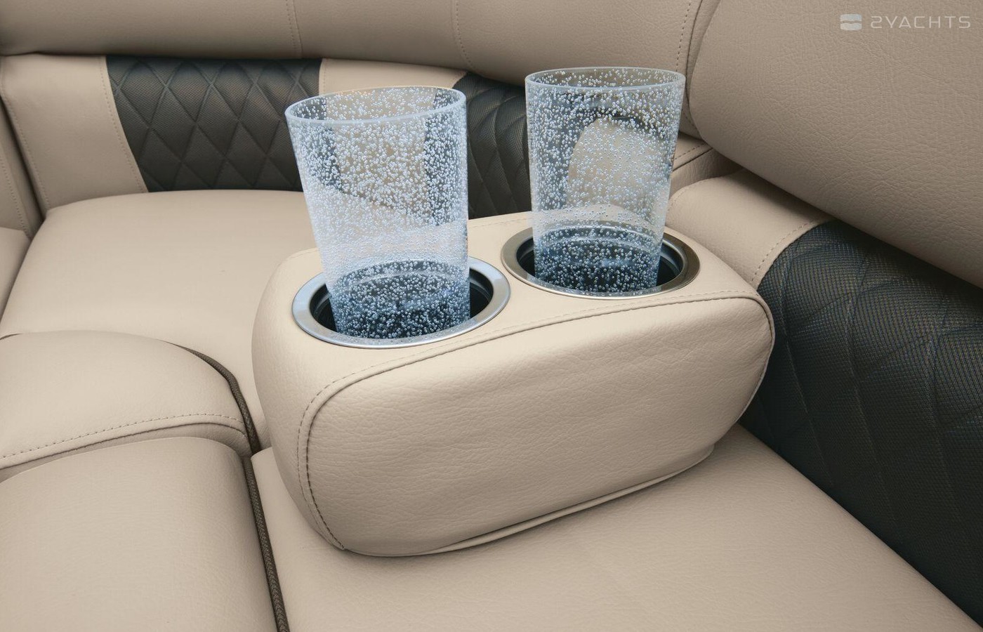 • Bow port couch w/STOW MORE™ system, underseat storage & armrest w/drink holder