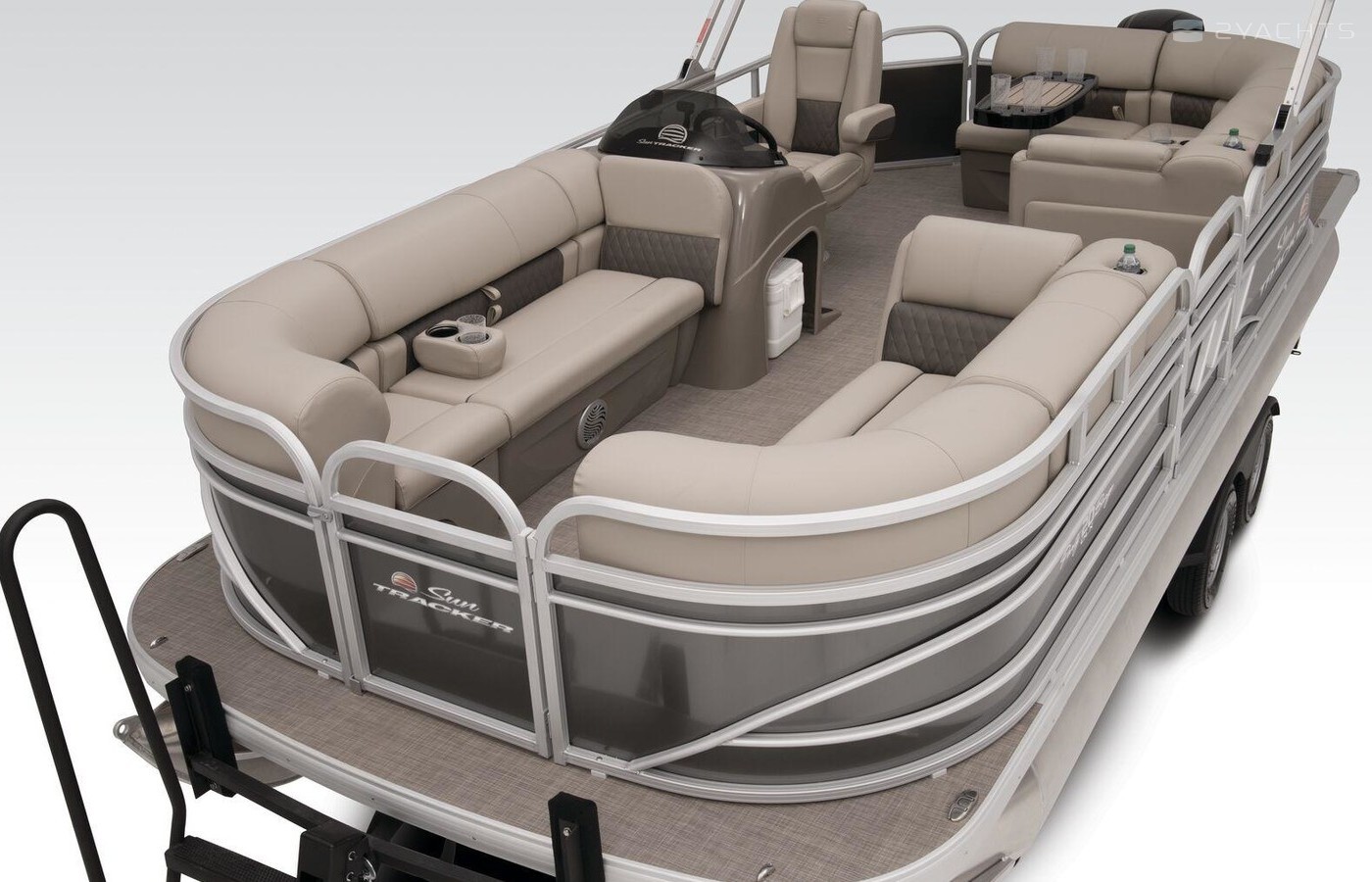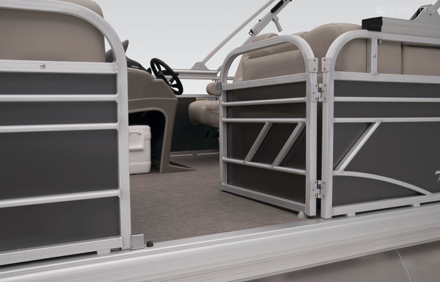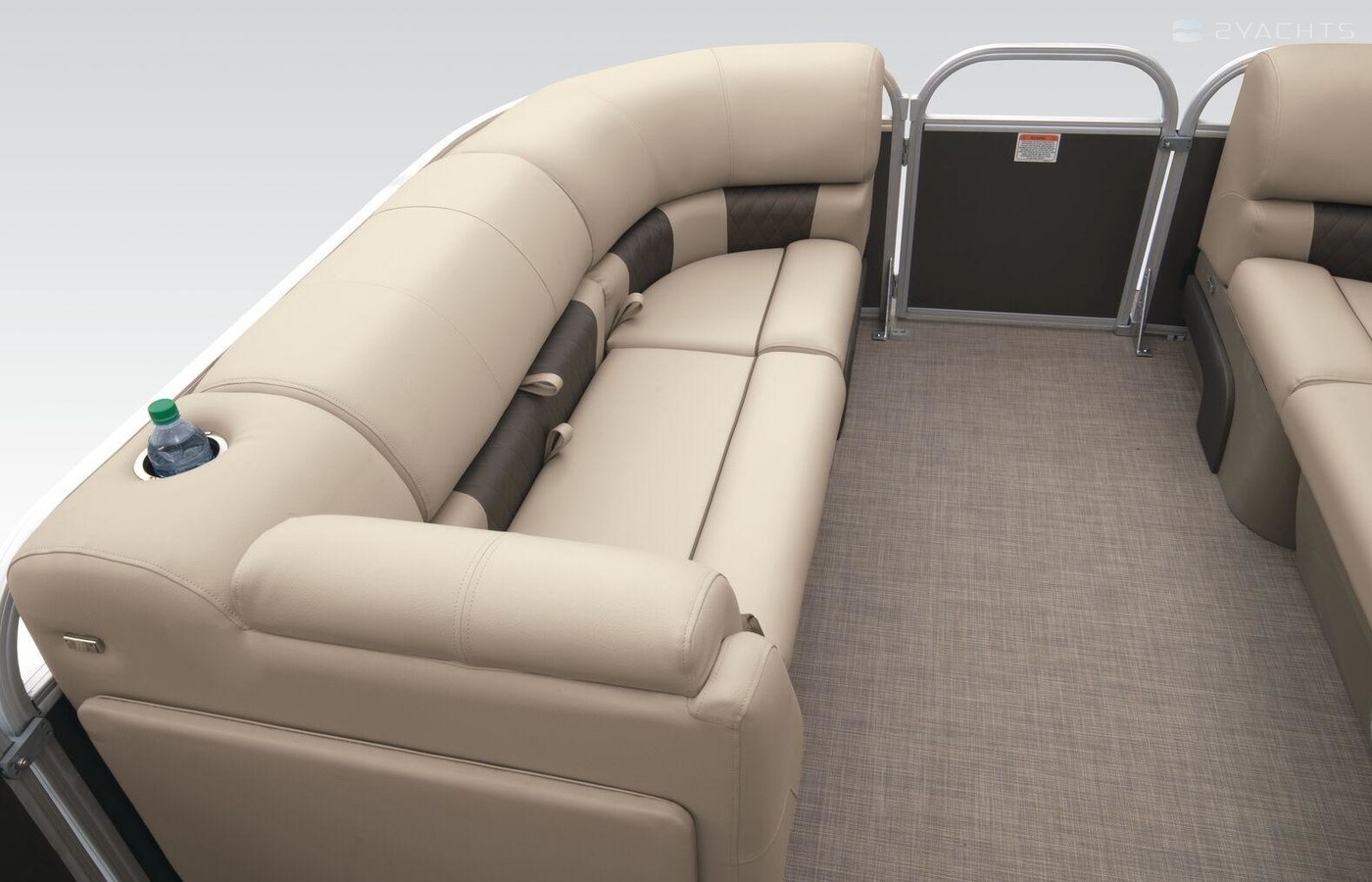 Regardless your crew’s size, this pontoon boat packs the right amount of features for a full day of fun. To start, check out the dual bow couches and midship L-lounge, all with the STOW MORE™ seat storage system to provide plenty of space for gear (the seat-back compartments can even be accessed safely while cruising!). Or, crank up the Bluetooth® stereo and take a cooling dive off the full-width swim platform—there’s even an extra-large ladder for easy reboarding.