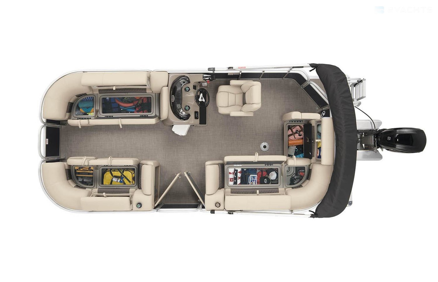 • Aft L-lounge w/STOW MORE™ system, underseat storage, lockable storage compartment & arm