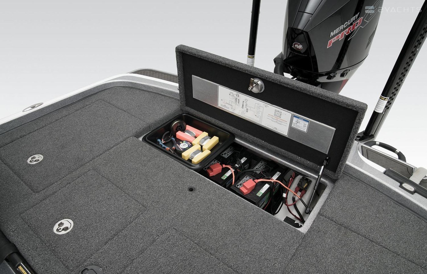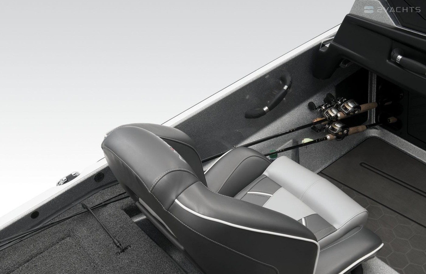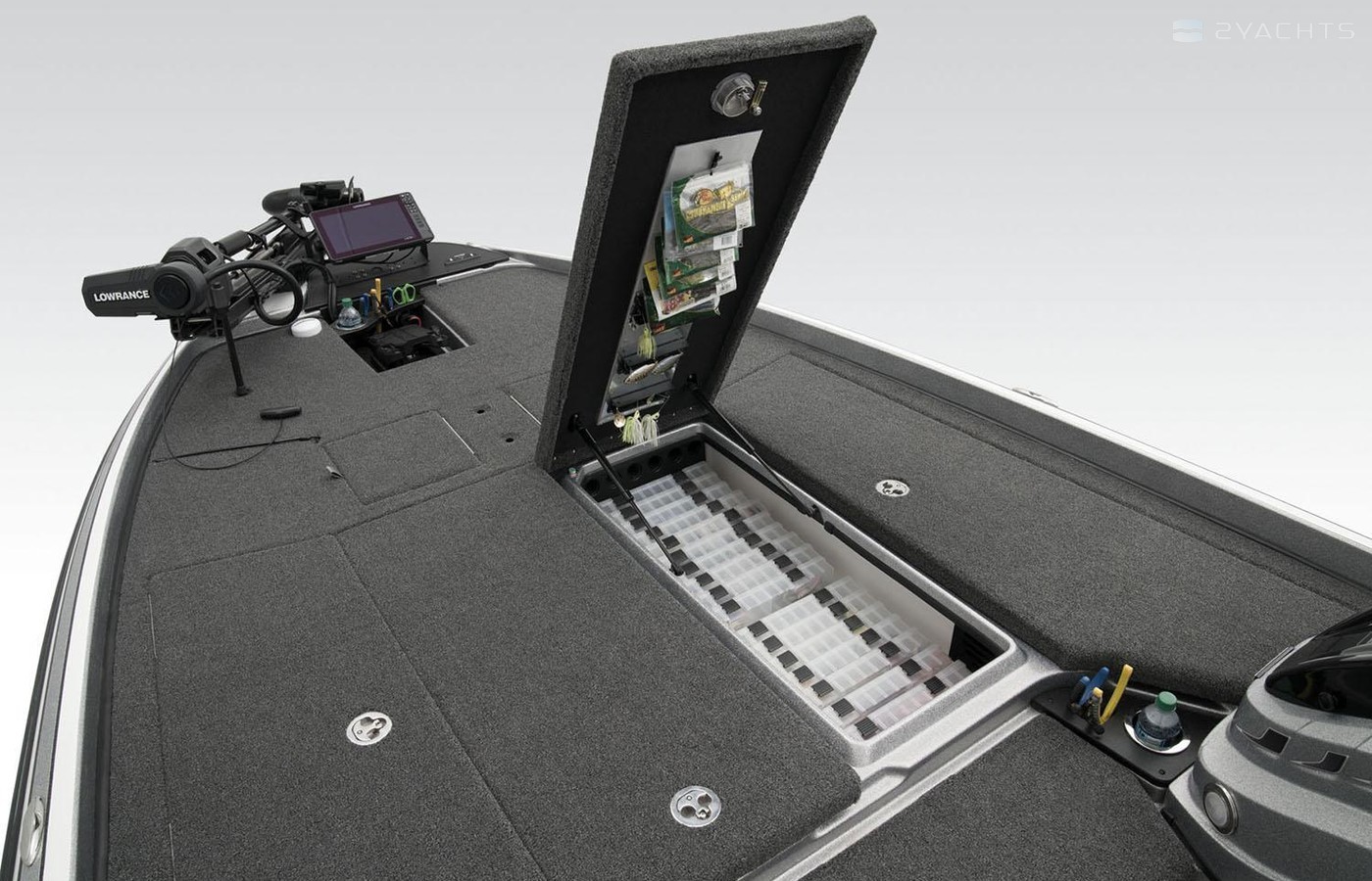 • Oversized, lockable bow port & starboard rod lockers w/lift assists for rods up to 8' (2.44 m) & 23 tapered tubes in port locker