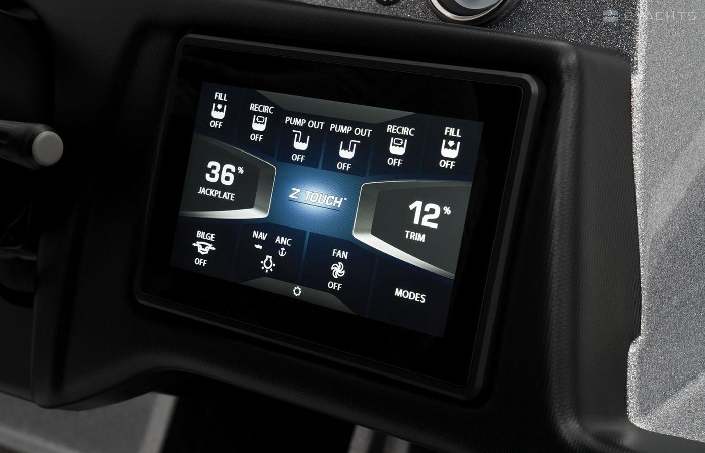 • Touchscreen switch panel w/1-touch boat controls including First Fish, Nite Mode, master power, trim, lighting, bilge, livewells & more