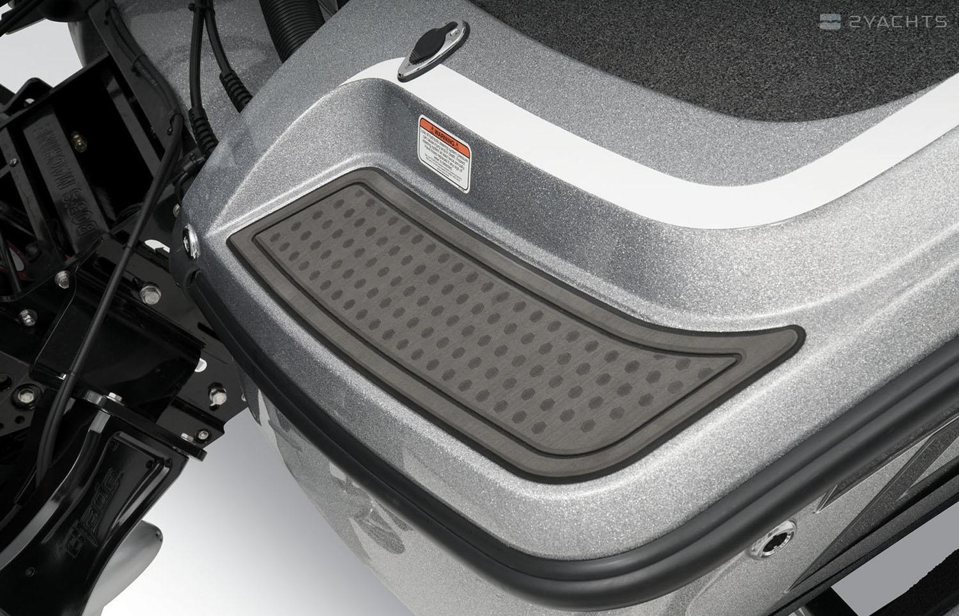 • Integrated winch stand step w/safety handle for easier boarding/reboarding at bow while boat is on trailer