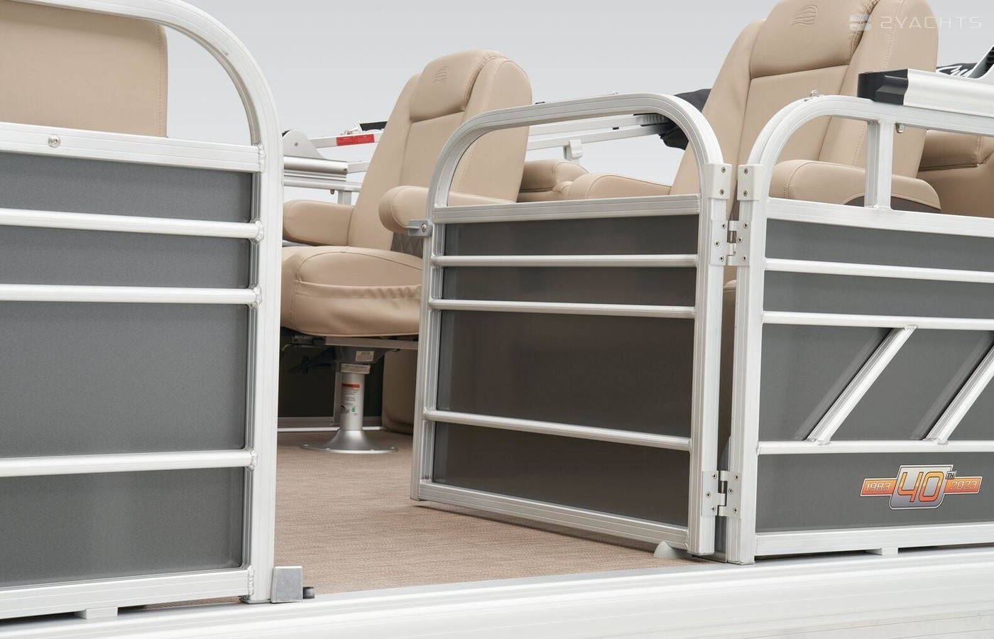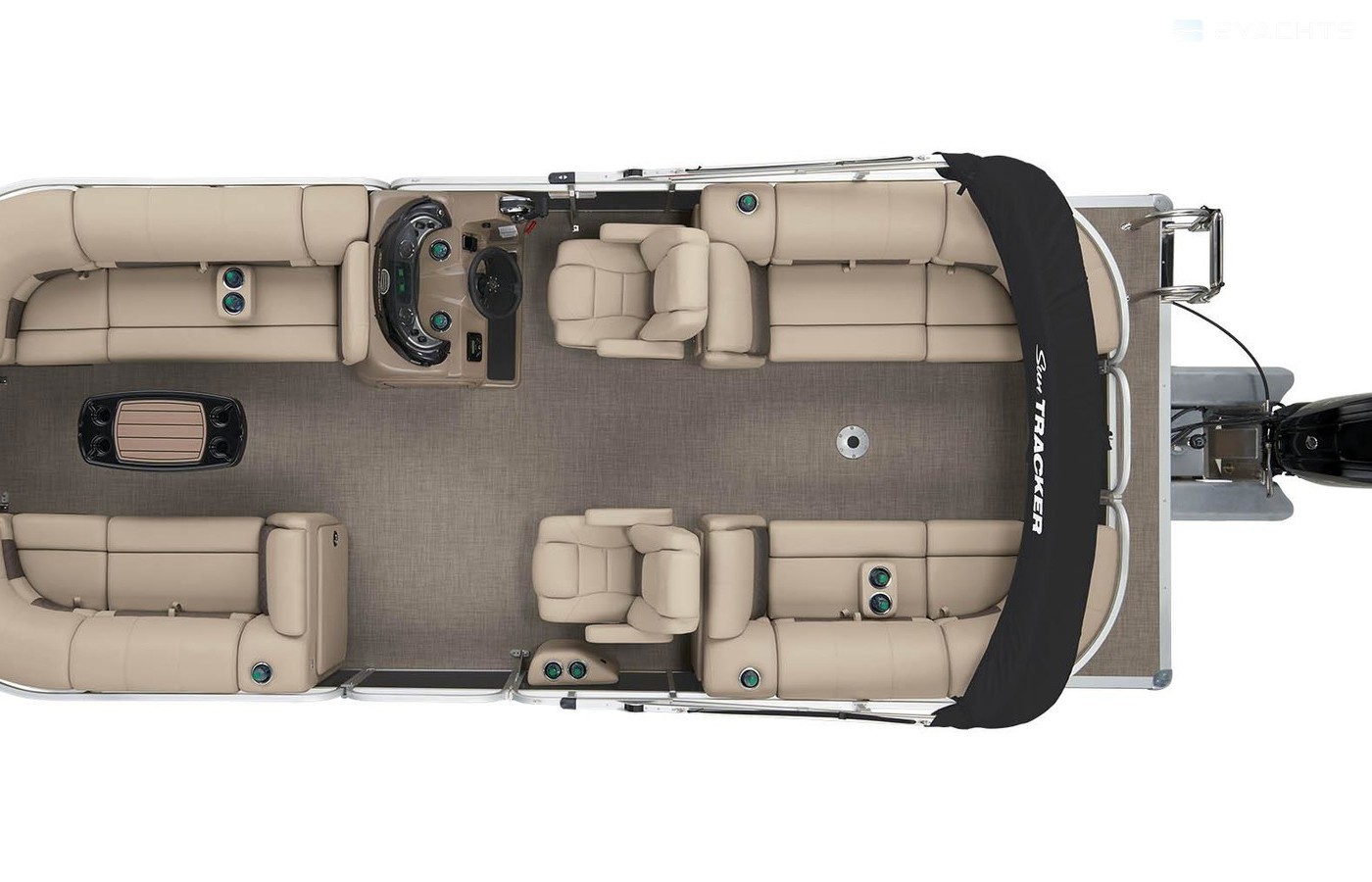 Onboard, you’ll find four extremely spacious lounges, each loaded with our STOW MORE™ seat storage system. This system includes rotomolded underseat storage and seat-back compartments that can be accessed without even standing up! It builds on that comfort with the new 10' Bimini top, new stereo and more!