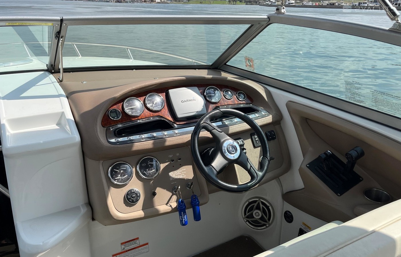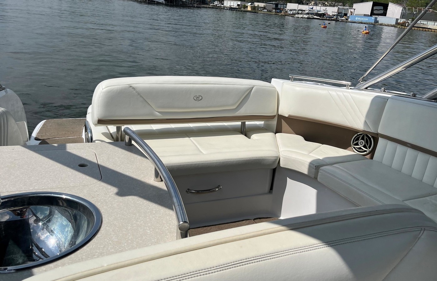 It is the ultimate entertaining boat with tons of seating for 10+, a huge rear sun lounge with, private bathroom / shower with a VacuFlush head, a kitchenette and a dinette that converts into a comfortable sleeping area for 2.