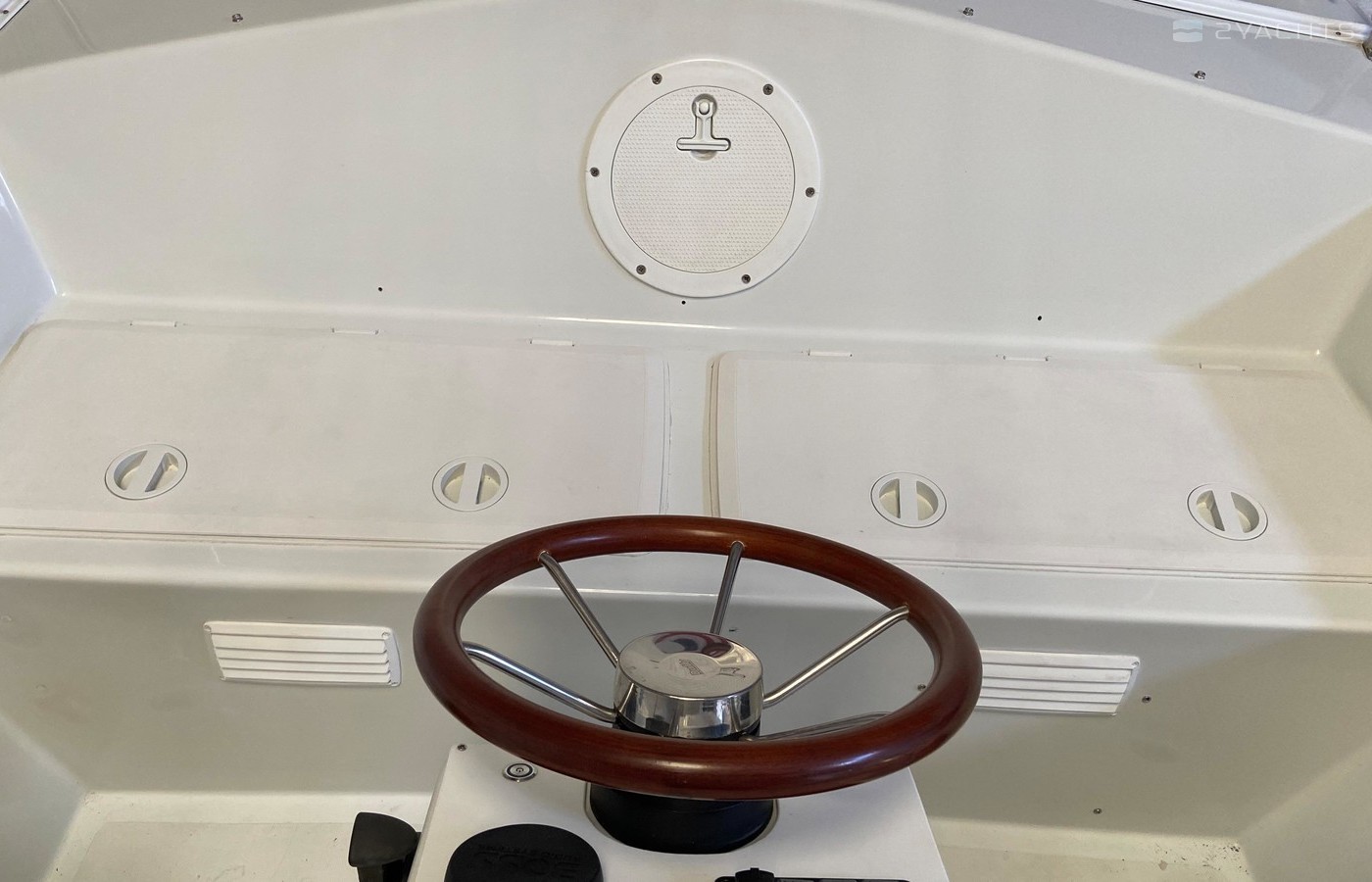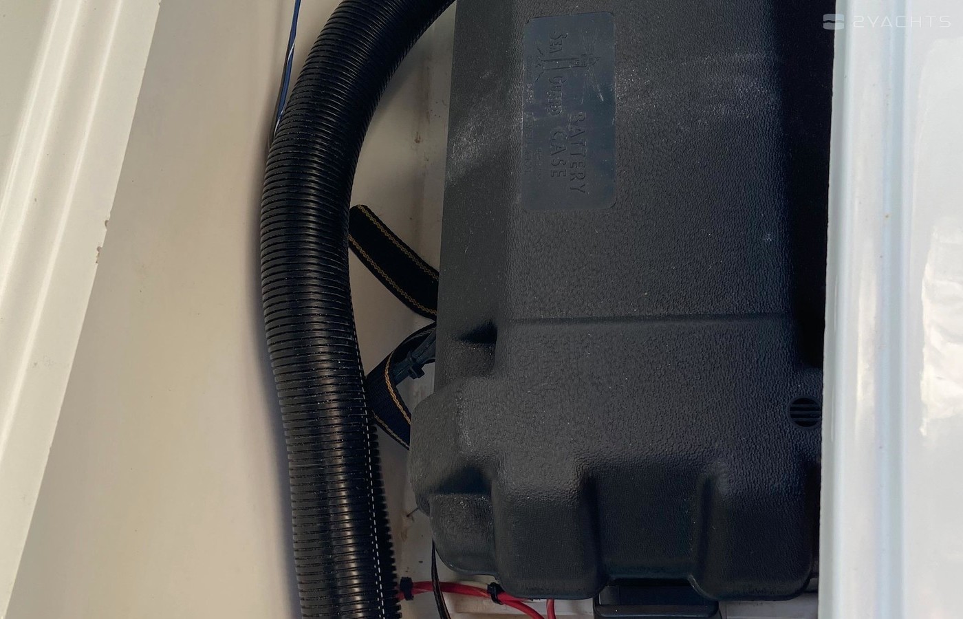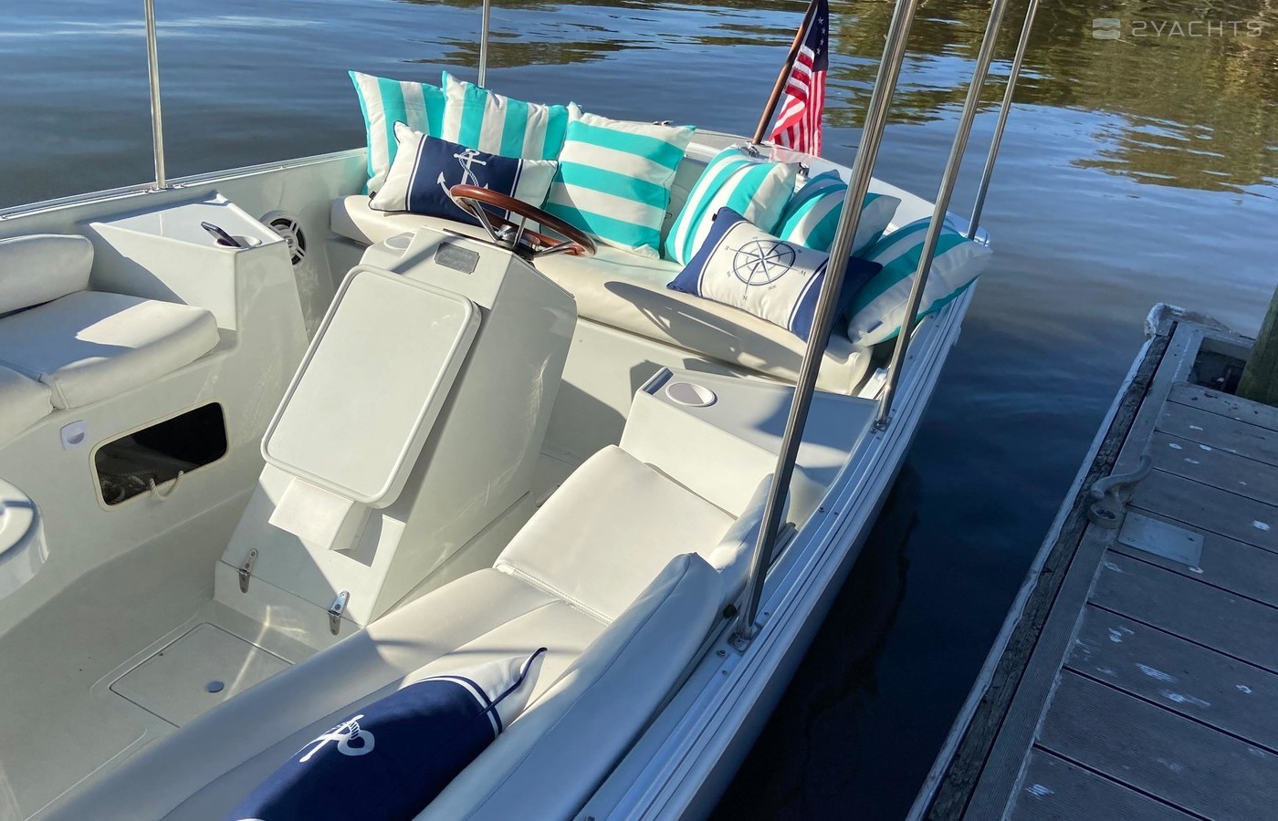 However, we did not stop with only a repower of new technology, but also converted every inch of this classic boat with:• New AC/DC bow 12V marine refrigerator, which keeps its contents cold on shore power or battery powerwhen cruising• New 12V AGM house battery automatically charged by the new Victron DC to DC converter• Two ~ new water-sensing bilge pumps• New hoses• New thru-hulls• New shore power receptacle• New 50’ shore power cord• New rub rail• New sheer and boot striping (along with your choice of a complementary vinyl name and port, installed onthe transom)• New LED energy saving LED interior and running lights• New USB and 12V charging receptacles,• And then relax into the comfortable surround seating while listening to the new 4 -speaker, Bluetooth soundsystem, all underneath the cooling shade of the new Duffy factory-made, navy-colored Sunbrella surreytop and its matching helm cover.• Also included in this Duffy Classic package is the boat’s existing cockpit cover and full window enclosure inteal color.