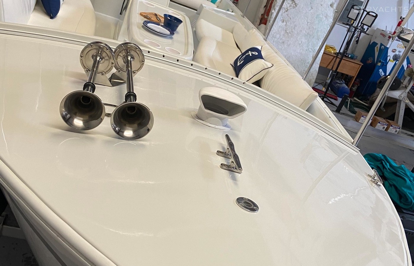 *Also included is a teal-colored cockpit cover and a eisenglass full window enclosure. Please note this boat is being stored in an air-conditioned warehouse awaiting your purchase.