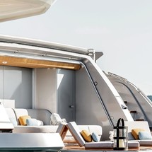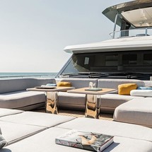 With her original and modern design, the Azimut Grande 36M is a Superyacht that synthesizes cutting edge style and attitude. From the unprecedented semi-walkaround upper deck inspiring freedom of movement to the fully retractable side windows posing a special gateway to the sea, all elements contribute to visually blend interior and exterior spaces. A barrierless lifestyle naturally blurs the boundaries between onboard pleasure and oceanic greatness.