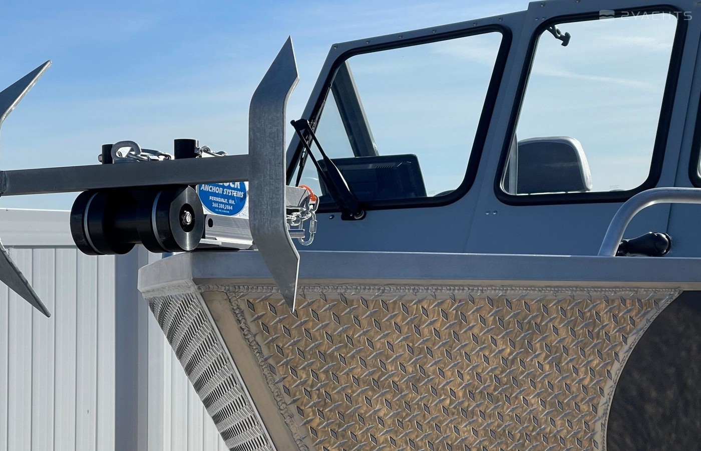 Lee Lock Bow Roller with 26# Matching Anchor/Minnkota Trolling Motor, 2 Stern Rails with Downrigger Brackets, 2 Scotty 1106 Downriggers