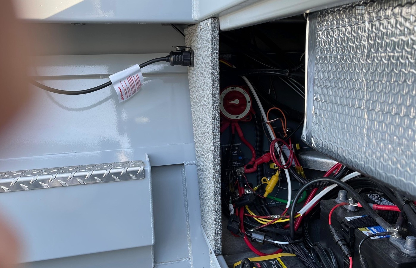 Diamond Plate Bow Guard, Minn Kota 36 Volt 112# Thrust, 60" Shaft with 1 I Pilot Remote, no foot pedal, 1 Lee Lock Quick Change Base Plate, 1 Lee Lock Trolling Motor Plate Parking Port Side, 3 Group 27 Interstate Deep Cycle Batteries Mounted in boxes in Bow Storage Area, 1 Pro Mariner 3 Bank 20amp Charger, 1 Minnkota 60amp Circuit Breaker 1 Ram Mount to Secure Motor When Stowed, Stainless Steel Prop -in-lieu of Aluminum Prop