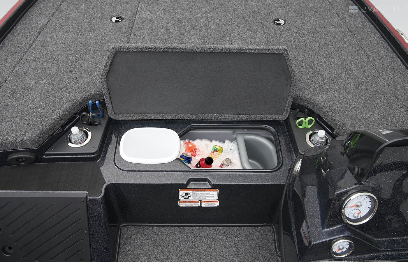 • Step to bow deck w/62-qt. (58.67 L) insulated cooler, removable trash receptacle & snap-in sandwich tray