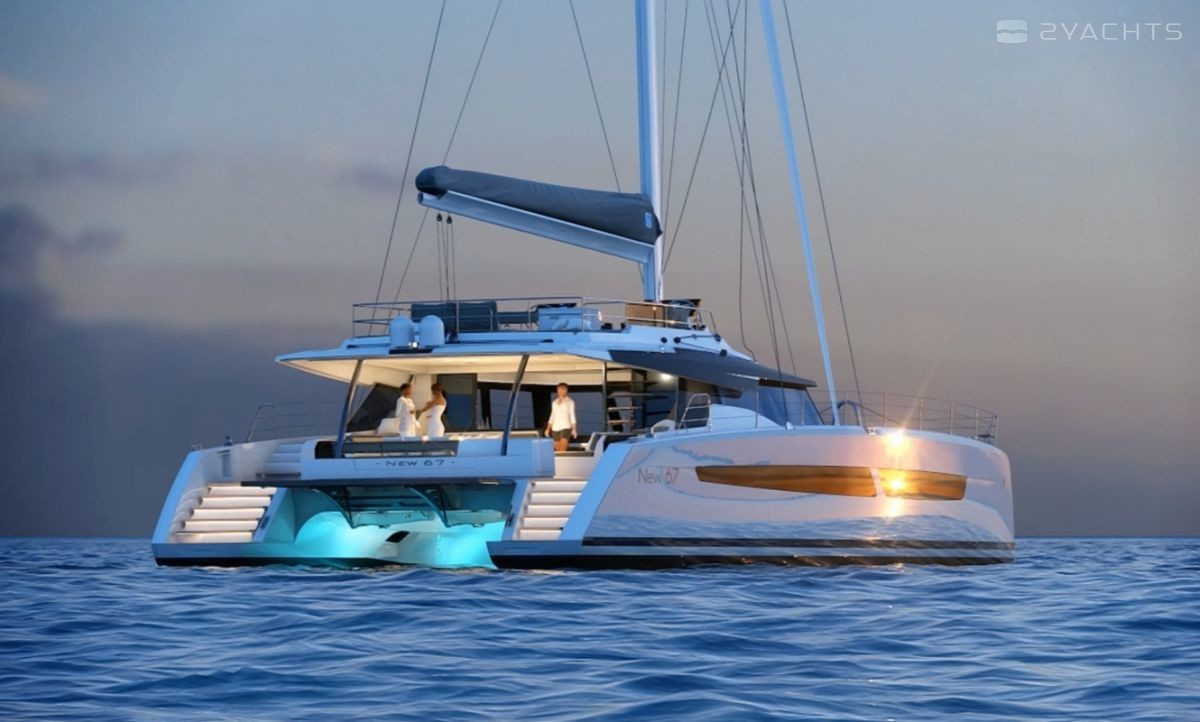 Der Fountaine Pajot Power 67 ist ein von Berret Racoupeau entworfener Motorkatamaran, der 2019 von der Werft vorgestellt wurde. Der Prototyp dieses Führers in der Reihe der Katamarane von Fountaine Pajot war die Alegria 67. Das Schiff mit einer Gesamtlänge von 19,69 m und zwei Motoren mit 300 PS. kann für Tagesausflüge und Ausflüge zum offenen Meer verwendet werden. Die Werft bietet die Möglichkeit, die Bretter zu streichen, zusätzliche Ausrüstung zu installieren und die Räumlichkeiten zu planen.