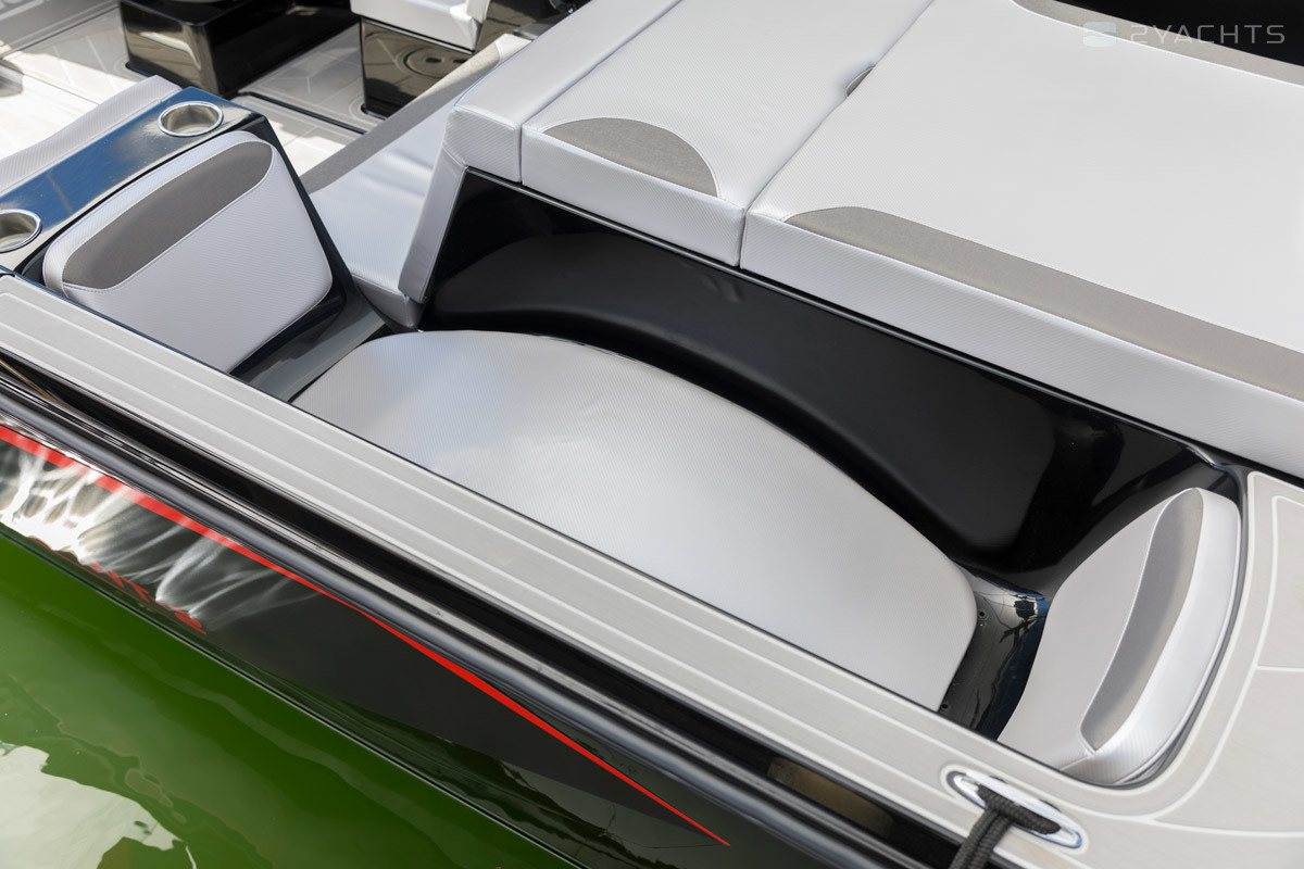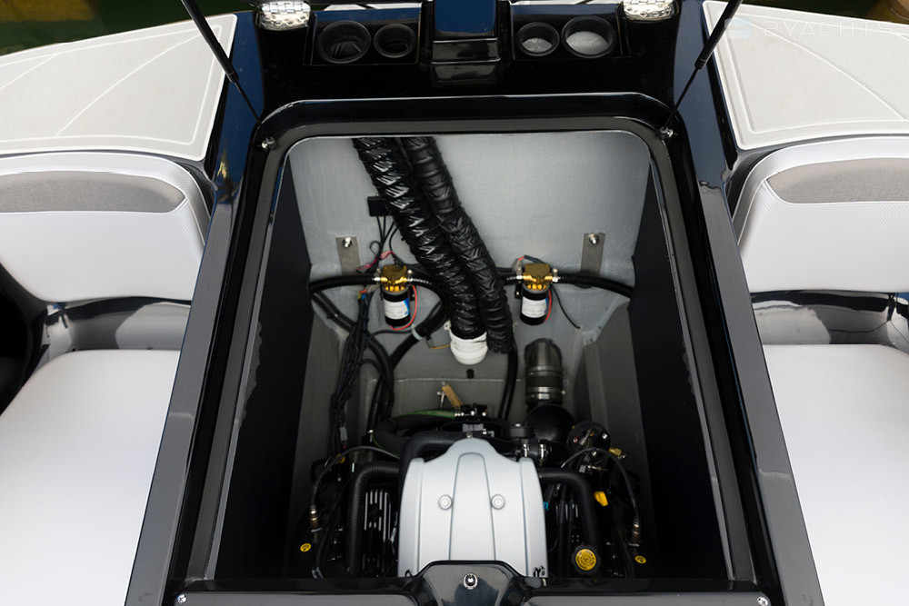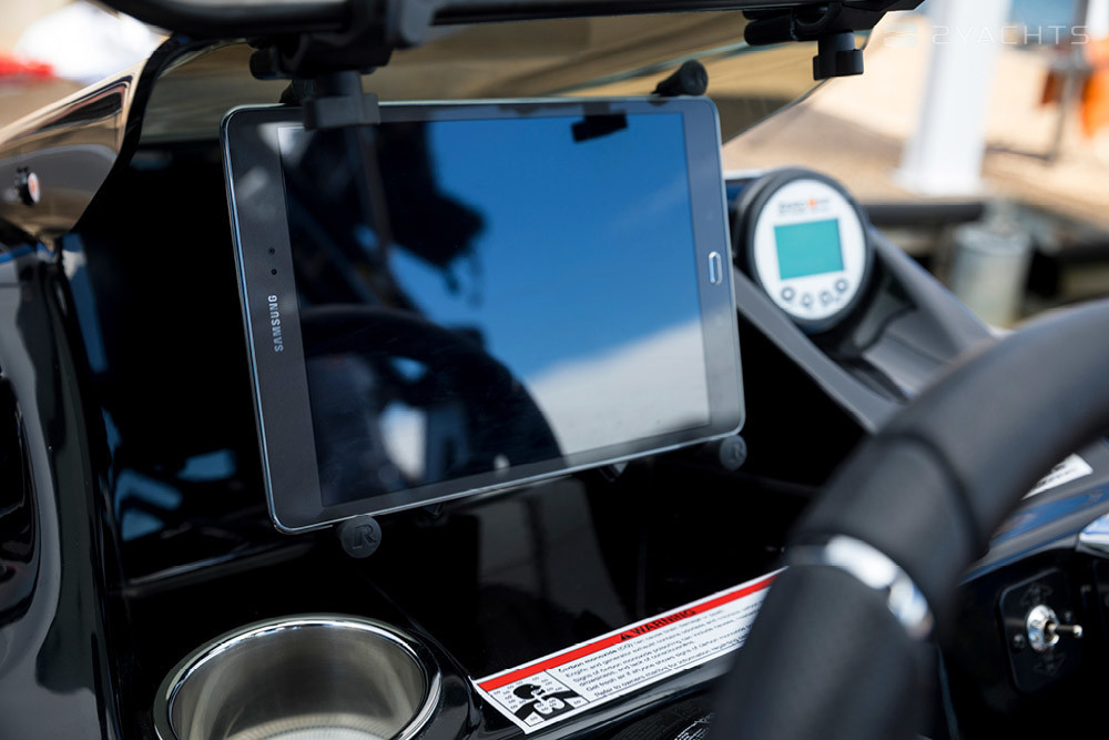 Das Cockpit des Bootes wird mit seinem Bug kombiniert und bildet einen riesigen Innenraum. Die Cockpit-Anordnung umfasst ein Ecksofa, einen beweglichen Kapitänsstuhl und drei Beifahrersitze. Es ist möglich, die Position des Ruders und die Höhe des Sitzes davor einzustellen.