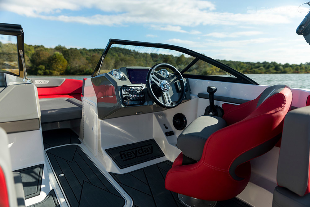 Der Heyday WT-Surf Bowrider ist mit einem stationären Motor oder einem 350/400 PS starken Lautsprecher ausgestattet. Die Reisegeschwindigkeit des Bootes beträgt 32 Knoten, das Maximum 36 Knoten. Das Fassungsvermögen des Kraftstofftanks beträgt 227 Liter.