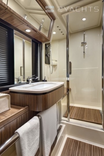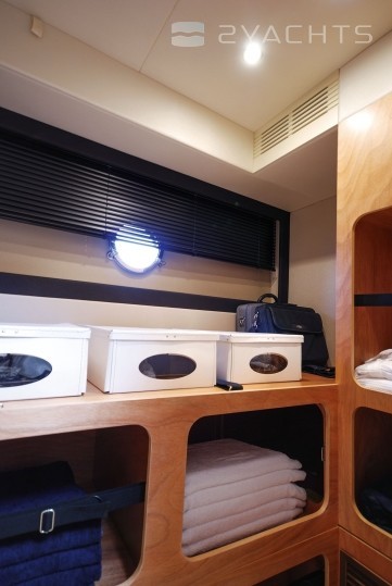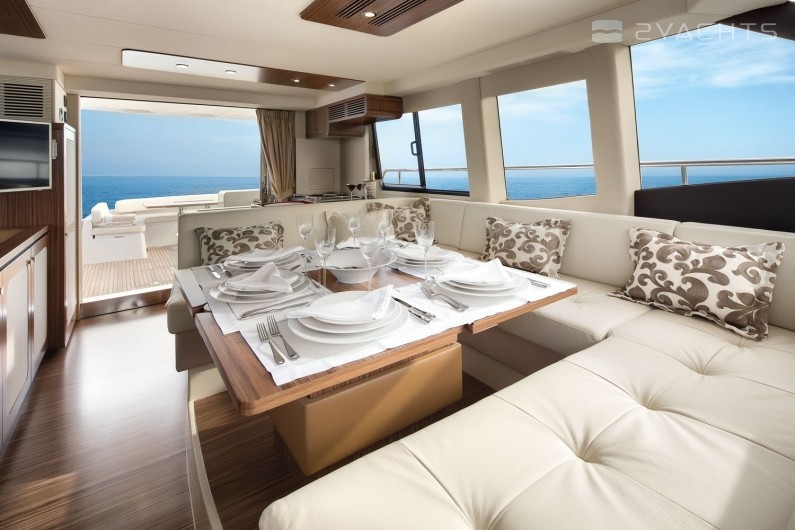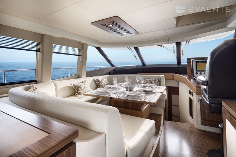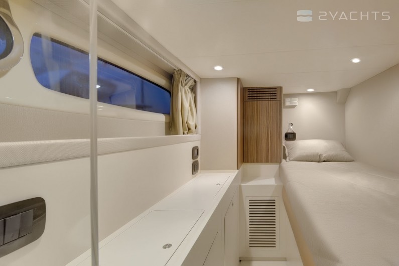 Diese 17-Meter-Yacht unterscheidet sich von den Vorgängermodellen durch einen großen Raum in den Kabinen und auf dem Deck, während sich die Anordnung des Innenraums nicht wesentlich geändert hat. Um sich in der Gesellschaft zu entspannen, gibt es eine Flybridge, Liegestühle im Bug des Schiffes und eine schattige Terrasse, von der aus Sie mit einem hydraulischen Antrieb zum Klappspiegel gehen können. Auf der Flybridge befindet sich ein Erholungsgebiet mit einem kleinen Kühlschrank und einem vollwertigen Kontrollposten. Das Azimut Magellano 53 verfügt über einen Essbereich, einen Kontrollraum und eine Kombüse mit Herd, Backofen, Spüle und Stauraum für Lebensmittel. Auf dem Unterdeck befinden sich drei Gästezimmer und eine Mannschaftskabine. Die VIP-Kabine erhielt beidseitig Fenster, zwei Sofas und war etwas kleiner als die Kabine des Besitzers. Die Eignerkabine zeichnet sich durch ein geräumigeres Badezimmer, einen Kleiderschrank mit eingebautem Safe und öffnende Bullaugen aus.