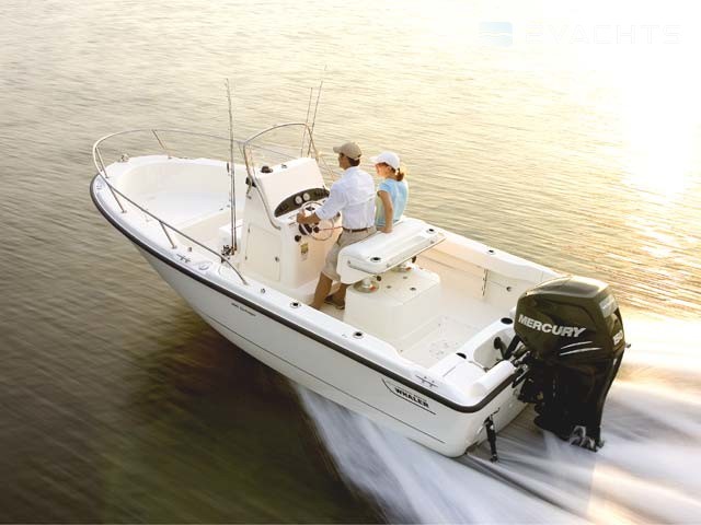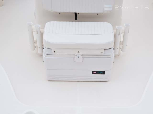 Am Heck des Boston Whaler 190 Outrage befinden sich zwei weiche Stühle, und auf der Steuerbordseite befindet sich eine Plattform für den Zugang zu Wasser. Das Modell ist mit einem Außenbordmotor mit einer Leistung von 150 oder 200 PS ausgestattet. Die Kraftstoffzufuhr ist auf 220 Liter begrenzt.