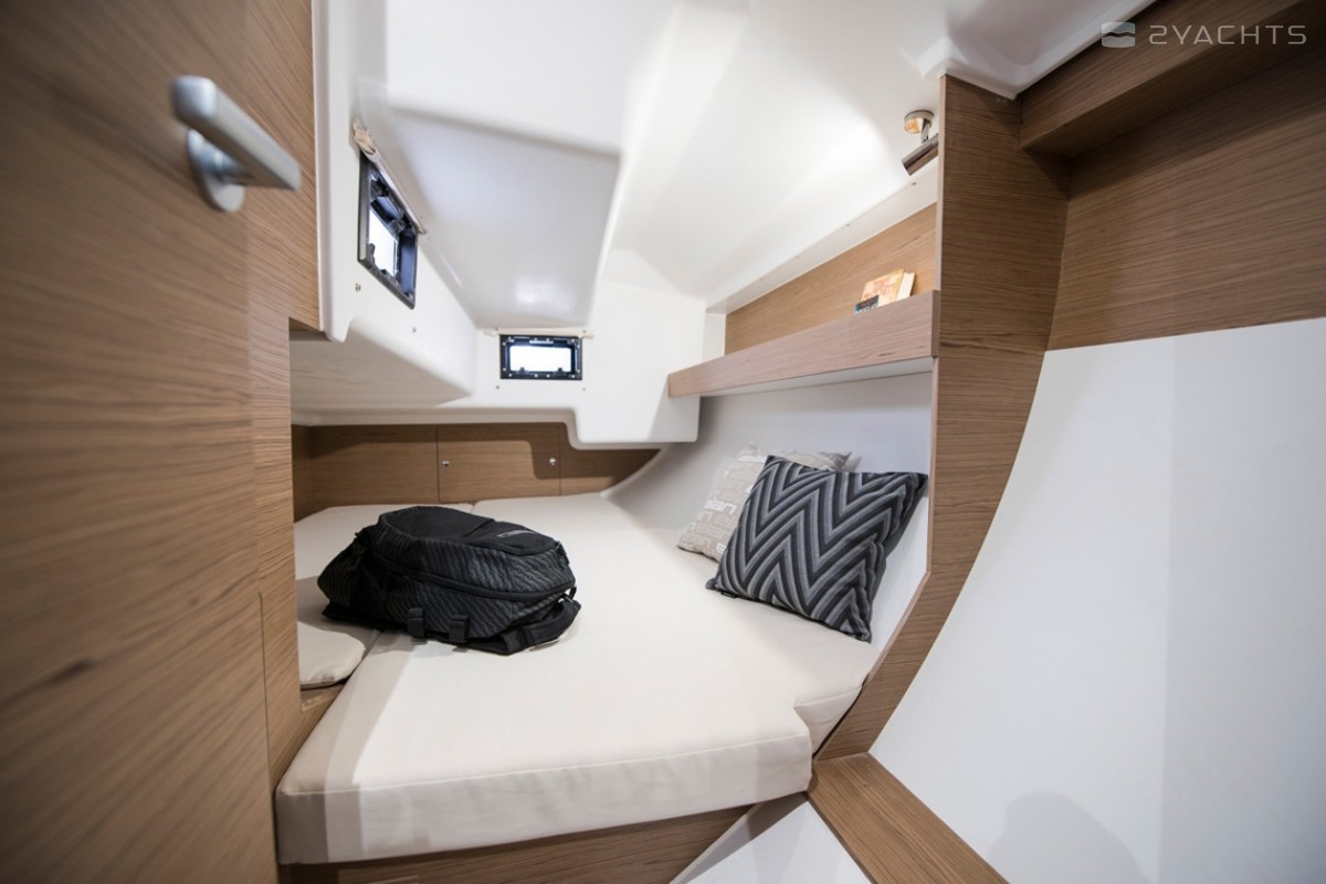 Die seitlichen Gehwege sind mit einer rutschfesten Beschichtung versehen, die das Verletzungsrisiko bei starkem Rollen verhindert. Im hinteren Teil des Bootes befindet sich eine klappbare Badeplattform, hinter der zwei Teakholzstühle an den Seiten installiert sind. Am Cockpit ist eine Lenksäule angebracht, die durch eine am Aufbaudach angebrachte Windschutzscheibe vor Spritzern geschützt ist. Achtern des Unterdecks der Elan E3 befindet sich eine Doppelkabine mit Doppelbett, Kleiderschrank und Bullauge. Auf der Steuerbordseite, näher am Mittelteil, befindet sich ein Badezimmer. Dahinter befindet sich eine Kartentabelle, die mit der Steuerstation verbunden ist. Auf der Mittschiffseite des Bootes befindet sich eine Kombüse mit Waschbecken, Herd und Ablagefächern, ein Salon mit zwei seitlichen Sofas und ein Klapptisch dazwischen. Eine Doppelkabine mit einem V-förmigen Bett und einer Panoramaluke wurde in den Bug gestellt.