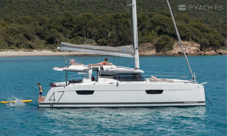 Das Debüt des Segelkatamarans Fountaine Pajot Saona 47 fand im Frühjahr 2017 auf der Internationalen Bootsausstellung in Düsseldorf statt. Das Modell, traditionell für diese Werft, wurde im französischen Stil und mit viel natürlichem Licht dekoriert. Das Schiff wurde vom Designbüro der Werft zusammen mit der Designfirma Berret-Racoupeau Design, dem Designer Olivier Racoupeau und der Innenarchitektin Isabelle Racoupeau entworfen. Die Yacht erhielt breite Übergänge zwischen Kabinen und viel Platz auf den Decks sowie eine Glastür am Heck des Schiffes, die als Ausgang zur schattigen Terrasse dient. Der Salon ist aus Mahagoniholz gefertigt und in verschiedenen Konfigurationen und Farben erhältlich.