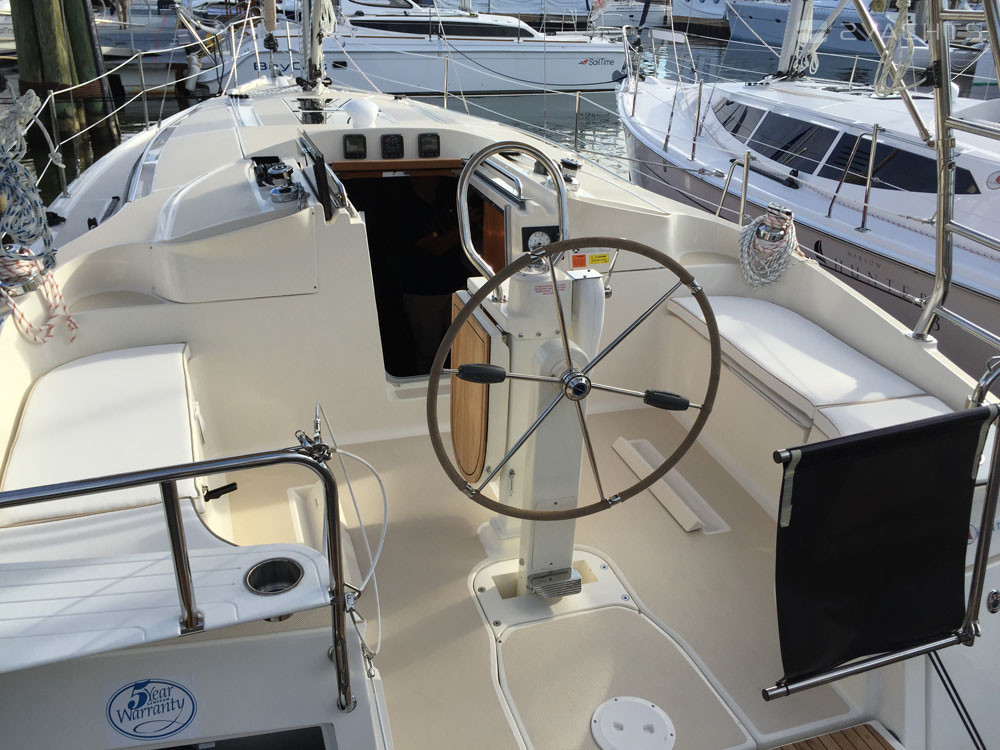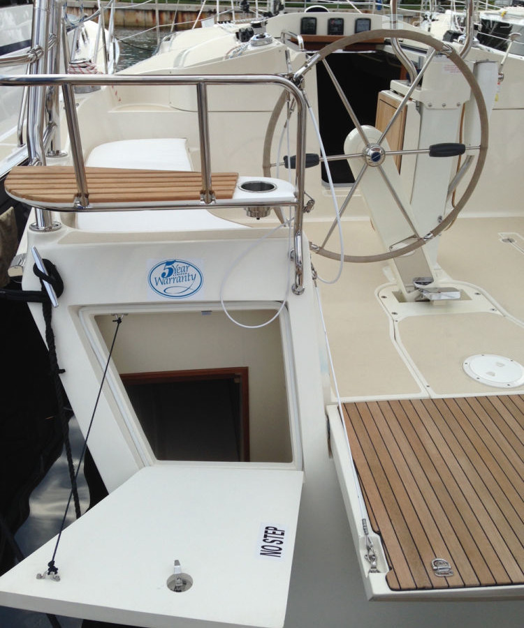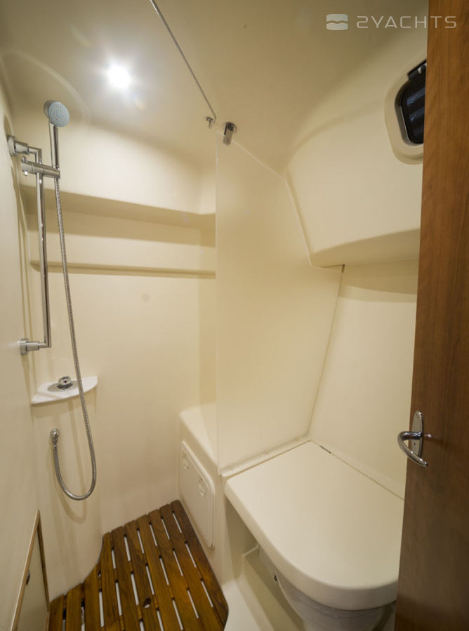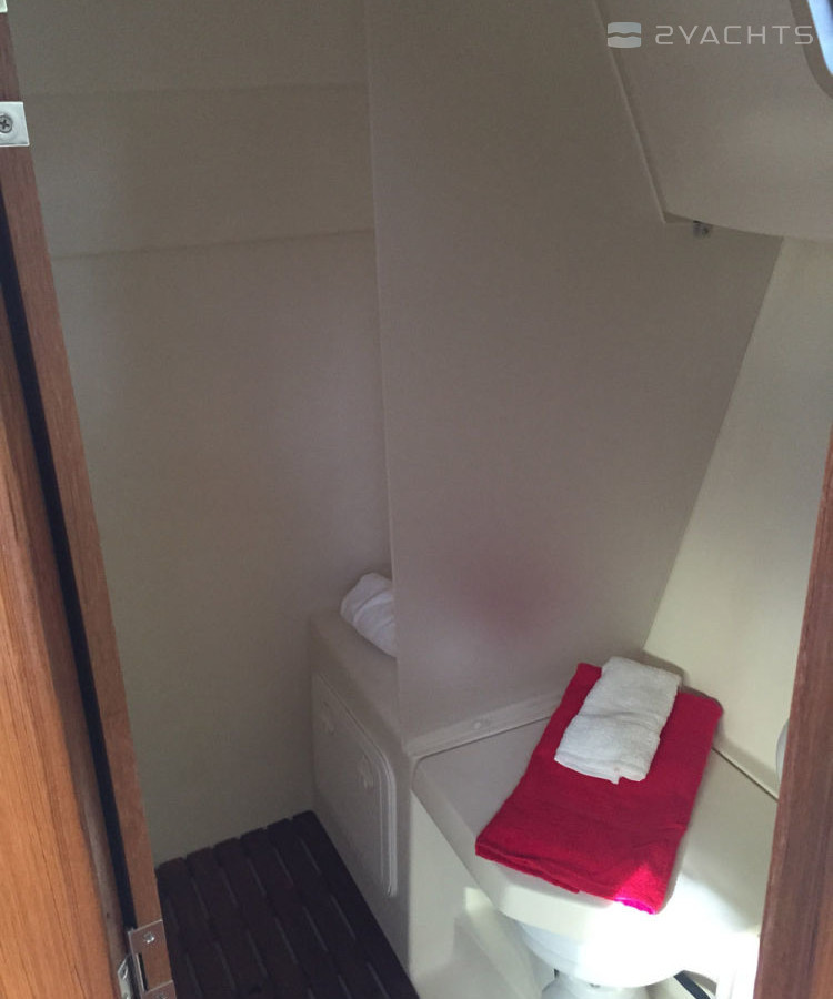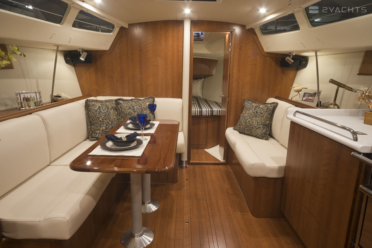 Das Heck des Modells ist mit einer Plattform mit einer Klappleiter für den Zugang zum Wasser und einem Anhänger ausgestattet. An den Seiten befinden sich Durchgänge zum Bug, die mit Metallgeländern eingezäunt sind. Die Segelfläche des Schiffes beträgt 54 m². Es ist mit einem stationären 21 PS Motor ausgestattet. Der Kraftstofftank fasst 94,6 Liter und der Frischwassertank 189,3 Meter.