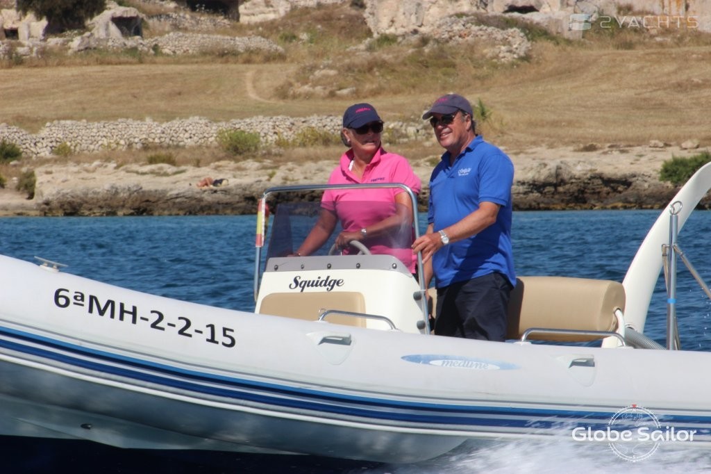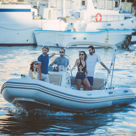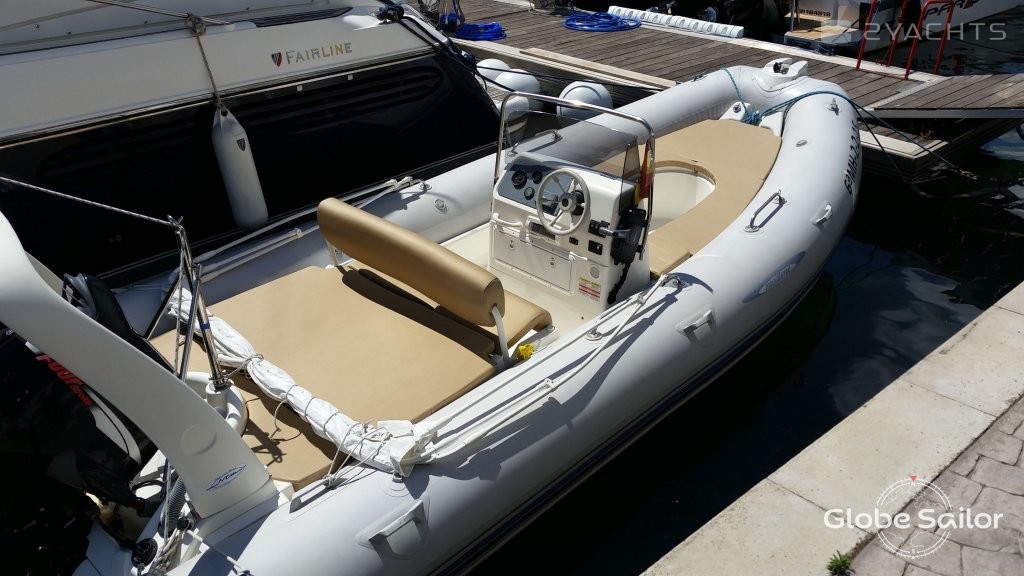 Hinter dem Kapitänsposten befindet sich ein weiches Sofa, das in ein Schließfach für persönliche Gegenstände verwandelt werden kann. Daneben befinden sich Befestigungen für eine abnehmbare hohe Markise, die das Cockpit vor der Sonne schützt - sie ist im Lieferumfang der Zodiac MEDLINE 660 enthalten. Die Bootszufuhr ist mit einer Schlepphalterung und einer Plattform für den Zugang zu Wasser ausgestattet.