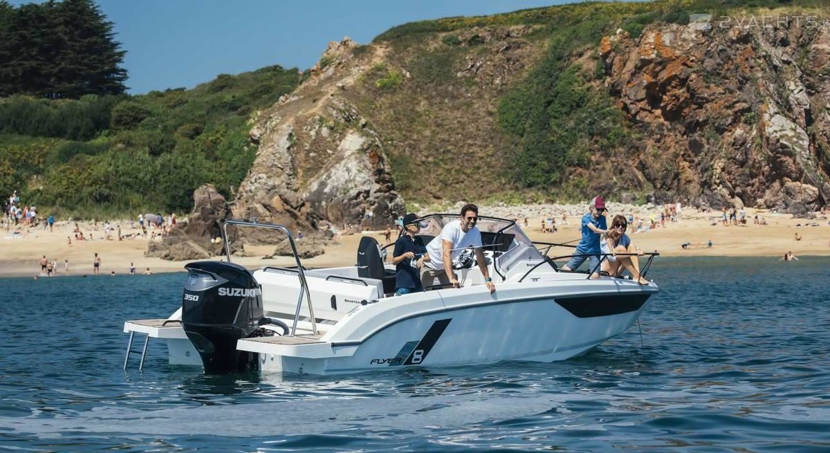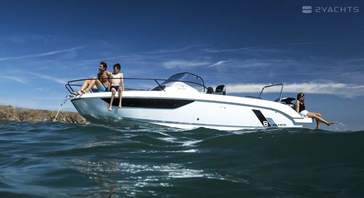 Beneteau Flyer 8 Sundeck: una embarcación de recreo ligera con un motor fueraborda, una zona de relajación con tumbonas en la proa y una cabina debajo. Se ha producido en serie desde 2013 y tiene capacidad para 8 personas en la cabina. Opcionalmente, se puede instalar un arco con un biminitop encima de la cabina del carrito con acristalamiento frontal para protegerlo de la luz solar y las salpicaduras. La carcasa de fibra de vidrio está pintada en diferentes colores a petición del cliente.
