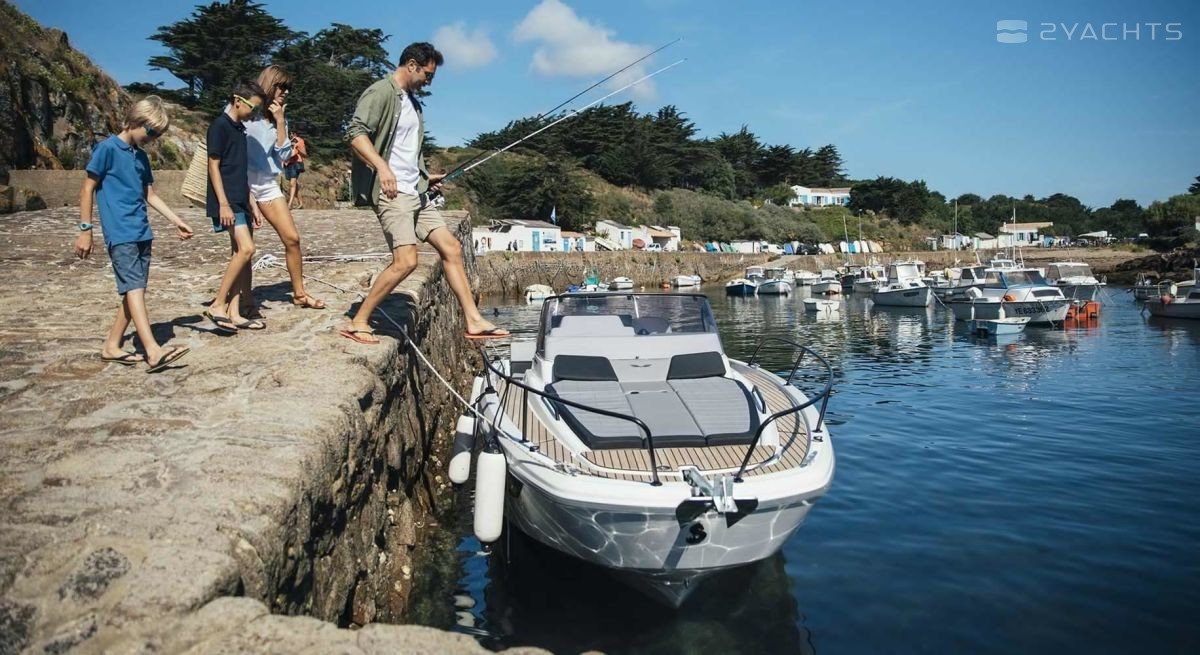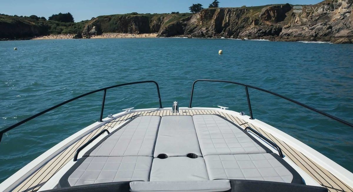 Beneteau Flyer 8 Sundeck fue concebido originalmente por los creadores como una embarcación para actividades al aire libre y su espejo de popa, especialmente adaptado para motores simples pesados, puede llevar plantas de energía con una capacidad de hasta 350 hp De serie con un motor de un socio oficial del astillero Suzuki DF350, el barco gana una velocidad máxima de 40 nudos en 15 segundos. Las reservas de combustible de 350 litros y el agua dulce de 80 litros sugieren la operación del bote dentro de la costa.
