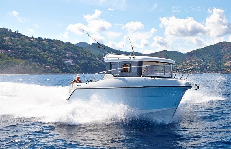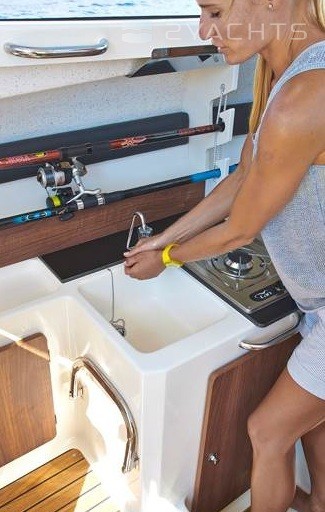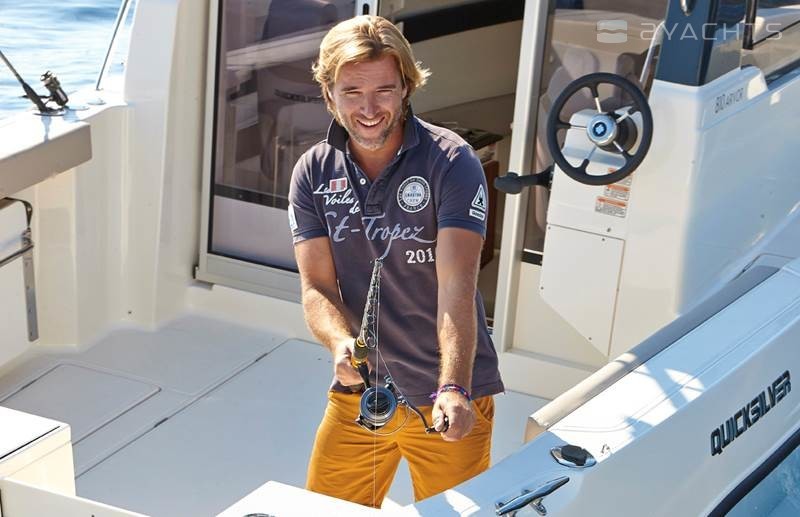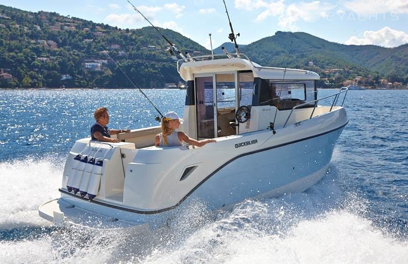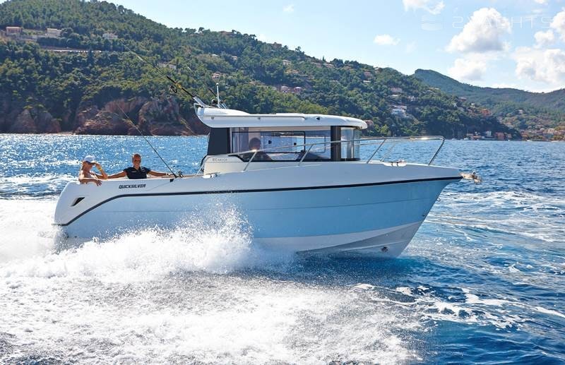 A petición del cliente, el Quicksilver 810 Arvor está equipado con un motor fueraborda de hasta 220 hp. El suministro de combustible es de 300 litros, el suministro de agua dulce es de 80 litros.