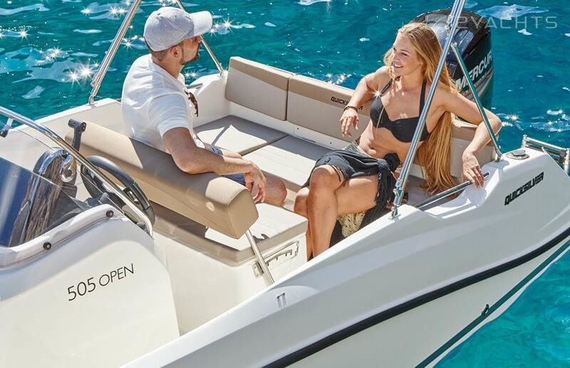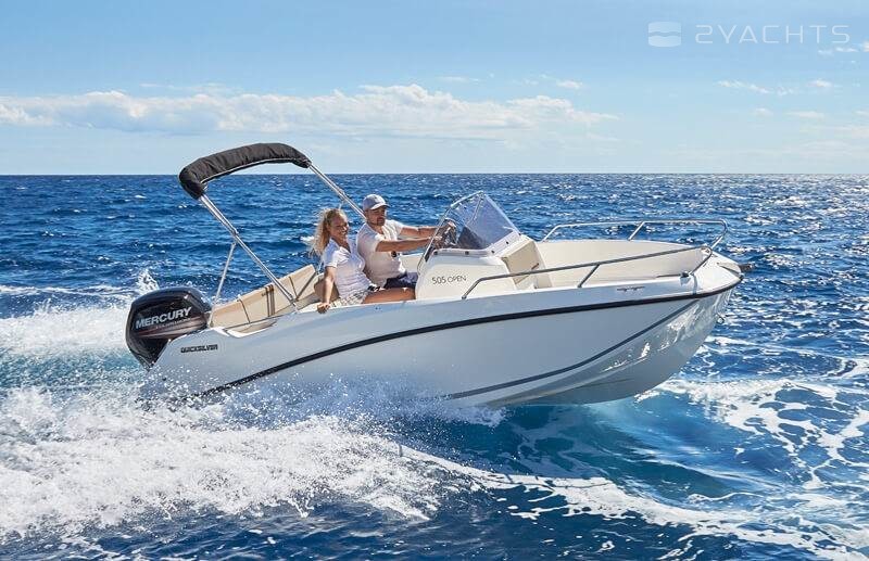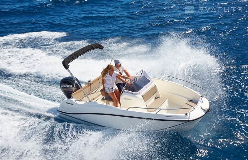 El barco a motor Activ 505 Open, lanzado en 2012, tiene una longitud de 5.03 metros y puede acomodar hasta 5 pasajeros. Cuenta con un motor fuera de borda Mercury 80 CV Fourstroke con 100 caballos de fuerza. y desarrolla una velocidad máxima de hasta 27 nudos.