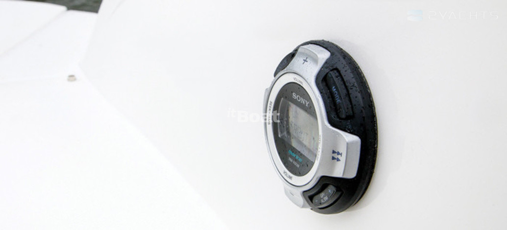 Posible ejecución de la nave con arco de radar. El barco está adaptado para remolcar un esquiador acuático, wakeboard y otras instalaciones para el entretenimiento acuático.