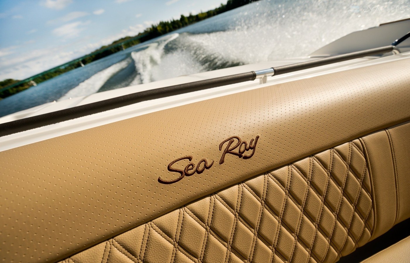 El barco Sea Ray SLX 350 OB está equipado con 12 asientos para pasajeros, un baño y ha sido producido por el astillero del mismo nombre desde 2017. El modelo ha recibido la certificación C por salir a alta mar, pero a no más de 200 millas de la costa. El barco tiene un sofá, una mesa, un casillero con un refrigerador de hielo, tumbonas, sillas con respaldo ajustable, y también hay una plataforma de baño con una escalera para subir a bordo.