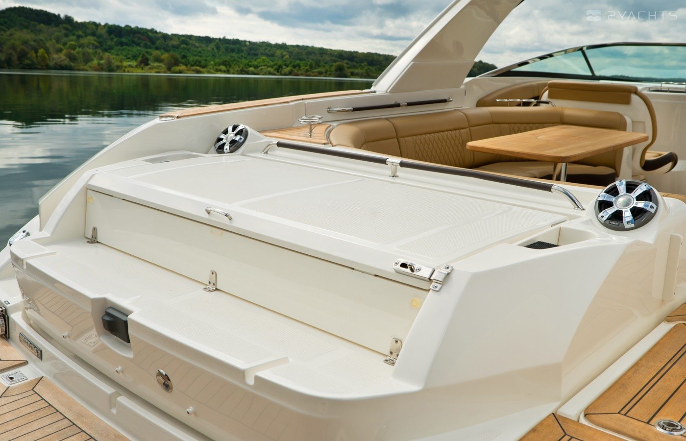 El Sea Ray SLX 350 OB está equipado con unidades fuera de borda Triple Mercury Verado 300XL con una capacidad de hasta 300 hp. El tanque de combustible tiene una capacidad de 844 litros, y el tanque de almacenamiento de agua dulce está diseñado para 113 litros.