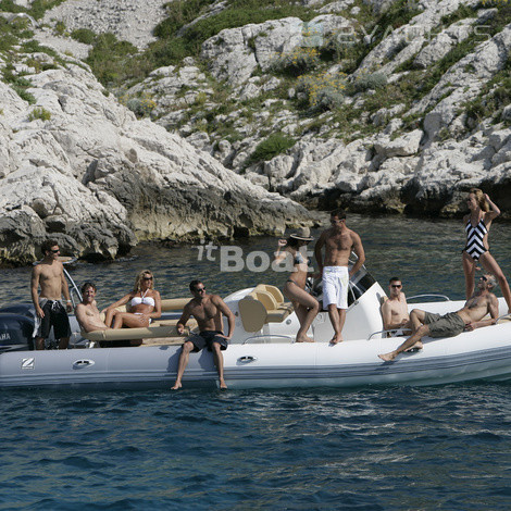 En la cabina del Zodiac Medline 850 hay un puesto de capitán con un volante ajustable y una caja para objetos personales. Enfrente hay un sofá doble suave, equipado con varios armarios y cajones, así como barandillas de metal. En la popa del barco hay un sofá de esquina para varias personas, junto al cual se monta una mesa de madera extraíble, que se incluye en el paquete básico. Detrás del sofá hay un soporte de remolque y dos plataformas compactas para acceder al agua.