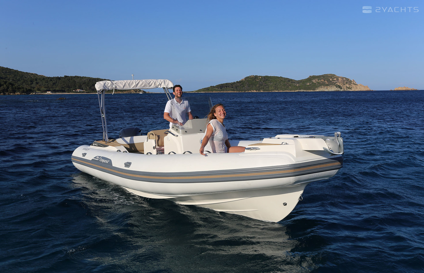 Tempest 775 mesure 7,75 mètres de long et 2,97 mètres de large. Puissance du moteur - 250 HP