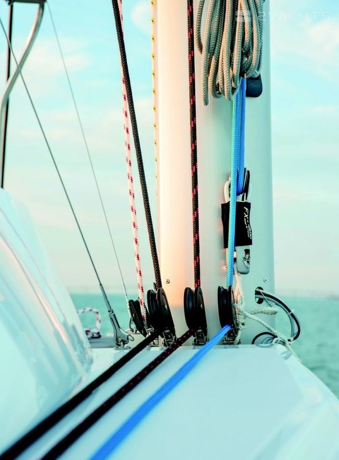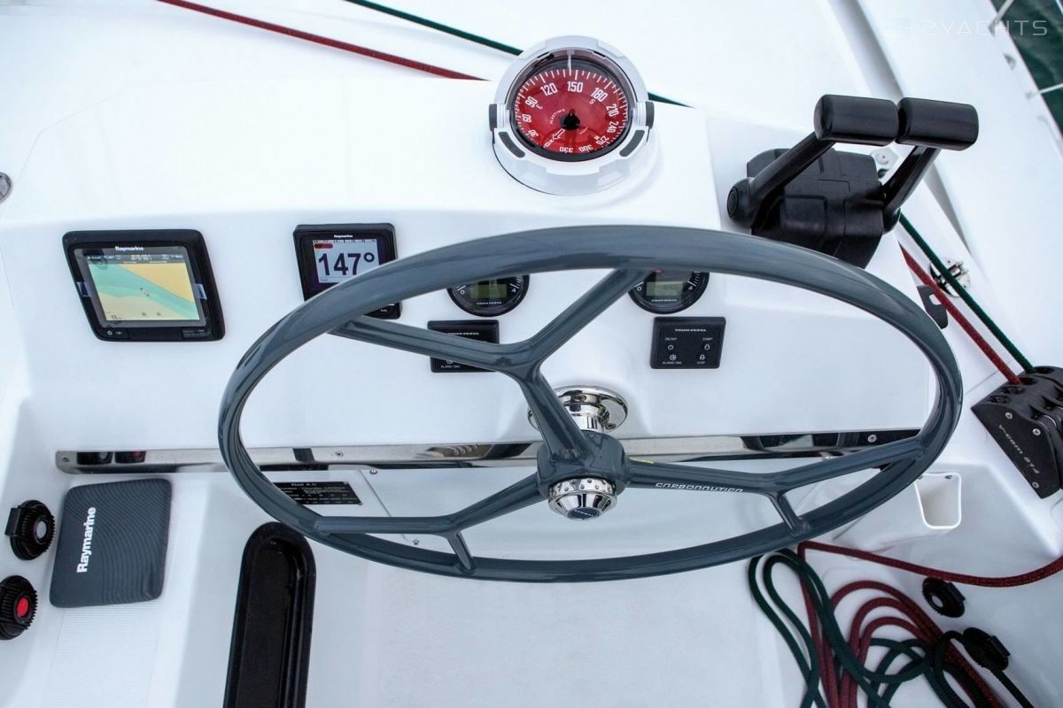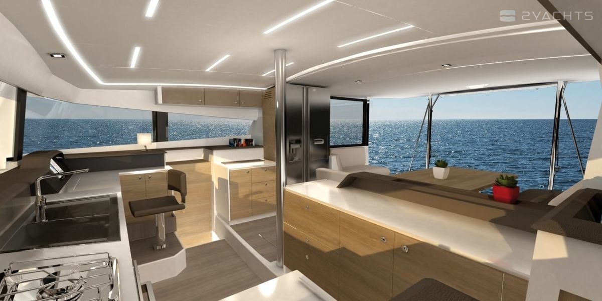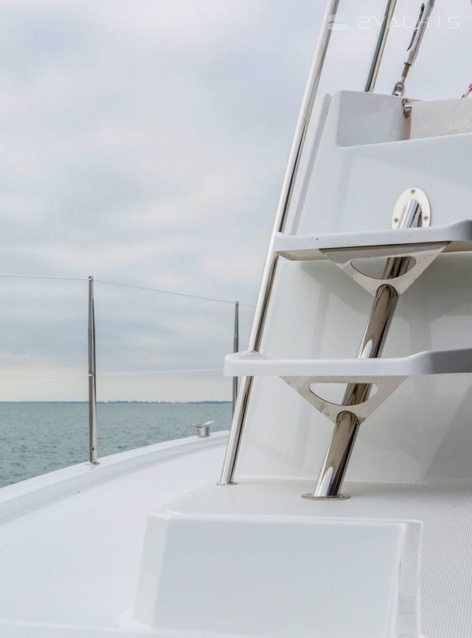 Le Bali 4.3 Loft est équipé de deux moteurs stationnaires de 40 ou 50 ch. La capacité des réservoirs de carburant et d'eau douce est de 800 litres et la voilure est de 91,5 m².
