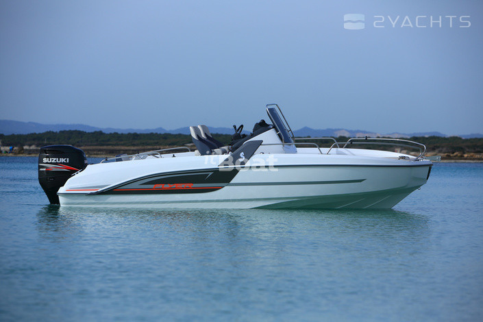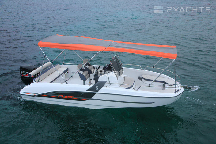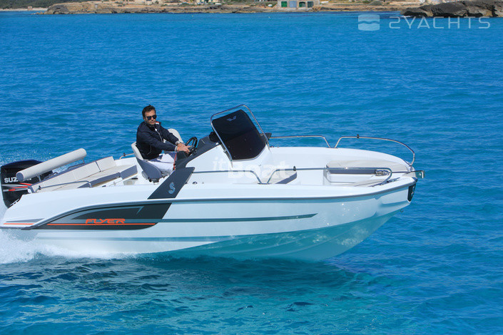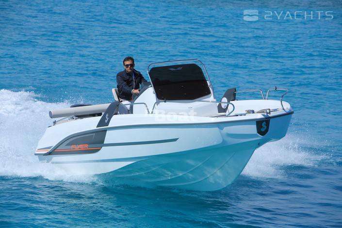 Beneteau Flyer 6 SPACEdeck est un bateau de plaisance léger avec une coque en fibre de verre de 2,5 m de large, qui permet de transporter le bateau sur une remorque sur la voie publique. Le chantier naval offre à ses clients deux options pour les finitions intérieures du pont: standard avec une prédominance de tons gris et acier inoxydable ou élégance avec finition noire et surfaces polies.
