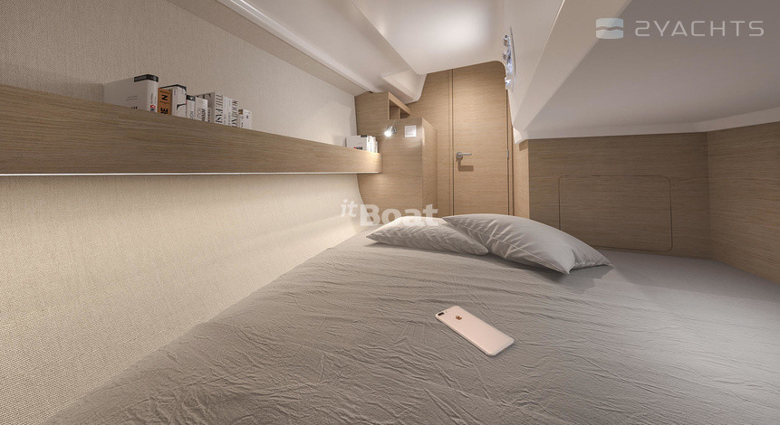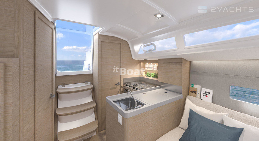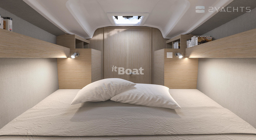 Au centre du cockpit du Beneteau Oceanis 30.1 se trouve une porte menant à la cabine principale. Du côté bâbord, il y a une cuisine avec un évier, un four et des fours électriques, un réfrigérateur et plusieurs boîtes pour l'épicerie, et du côté tribord il y a une salle de bains compacte avec un évier dans une pièce séparée. En face d'eux, il y a deux canapés moelleux avec une table à manger en bois, ainsi qu'une entrée de la cabine, équipée d'un lit double et d'un casier spacieux pour les effets personnels. Une cabine de couchage double similaire est située derrière les escaliers d'entrée.