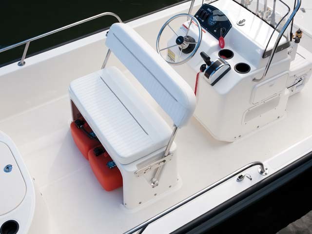 Le poste de capitaine est équipé de deux tiroirs et de plusieurs supports de canne à pêche. Un canapé doux pour deux personnes avec un dossier mobile est installé sur le cockpit, et un tiroir est situé en dessous. La poupe du navire est équipée d'un autre siège dans lequel un aérateur compact est monté; des rails métalliques sont installés sur les côtés. Le Boston Whaler 150 Montauk est équipé d'une échelle pliante pour l'accès à l'eau.